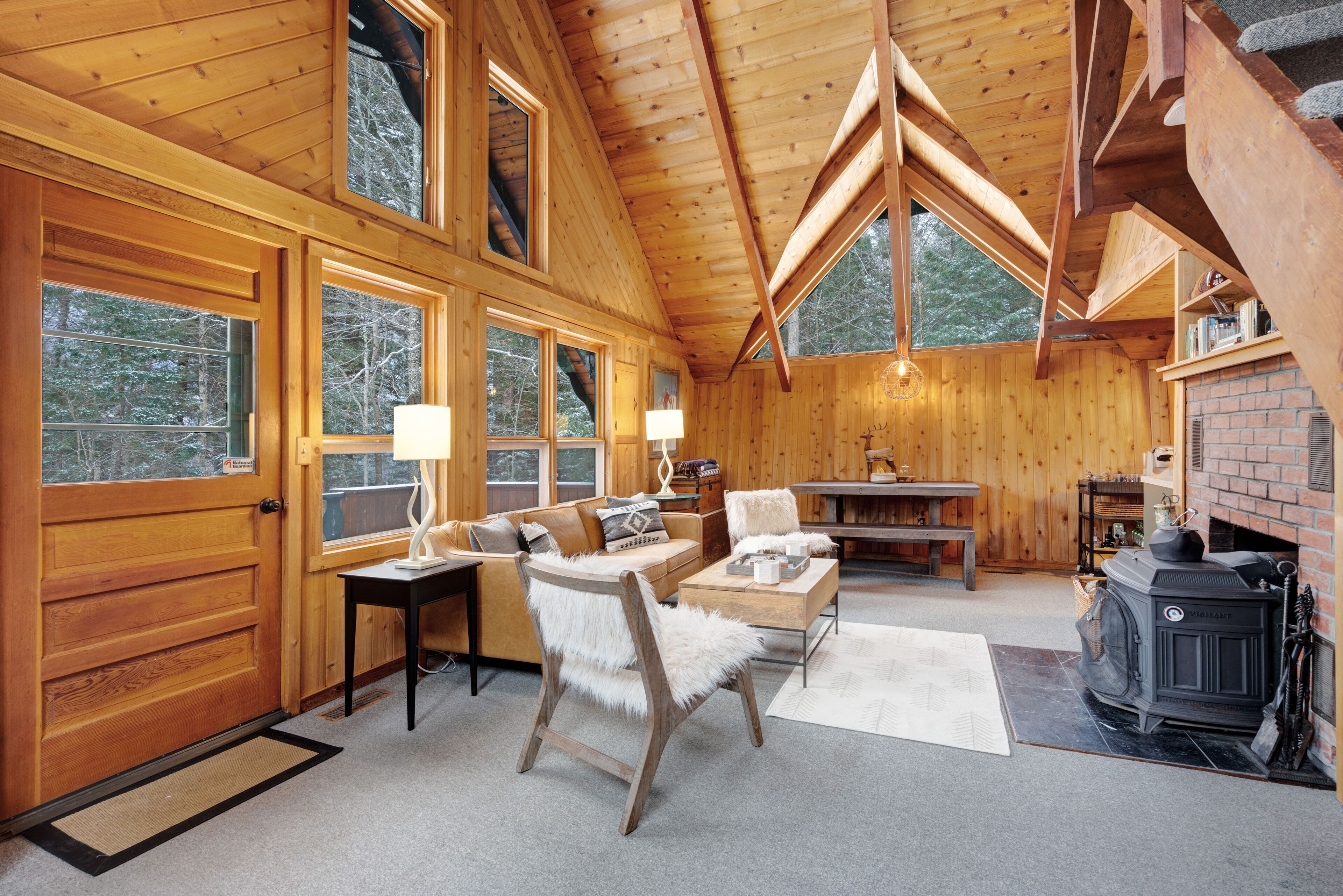You'll truly feel like making s'mores and rubbing your hands by the woodstove in this incredible cedar chalet. Nothing will feel better after a day on the slopes or the greens than relaxing in the jetted tub in the master suite. You have a great wraparound deck with a grill and ample space in the yard surrounded by trees, which is perfect for entertaining. You'll never lose the feel of the chalet even with the modern stainless appliances, spa-like master bath, all new countertops, and full heating throughout the home. Gather around the woodstove with your friends and your dog (yes, this chalet is dog-friendly!) and watch your favorite shows on the flatscreen TV or test your friends' skills playing one of the many board games available.