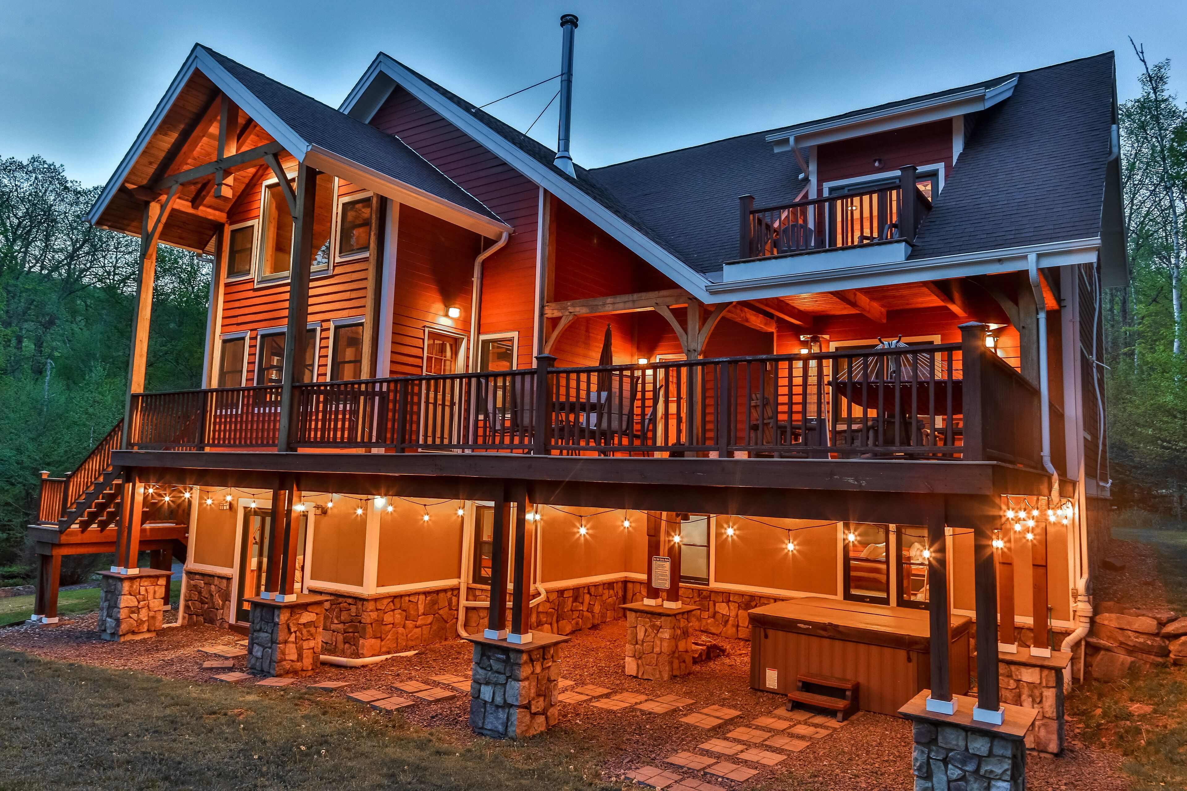 There are 3 furnished outdoor decks, a 2-tiered fire pit, and 2 vintage ski lift chairs. Enjoy the mountain views from the hot tub or around the beautifully done fire pit, eat at the covered outdoor dining table while cooking your food on the high end grill (with a back up secondary Weber grill - propane is included) on the stone patio. Enjoy a game of cornhole using our provided equipment on our spacious lawn.