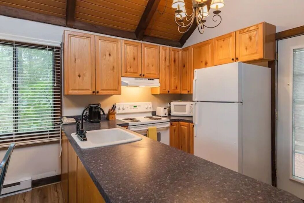 We provide all essential amenities, including linens for the bedrooms and bathrooms, soaps, K-cup coffee, creamers, towels, and full kitchen supplies. Stay connected with complimentary Wi-Fi and smart TVs. You'll also find snacks, hot chocolate, green tea, popcorn, a complimentary bottle of wine, firewood, and a firewood starter available for your convenience.