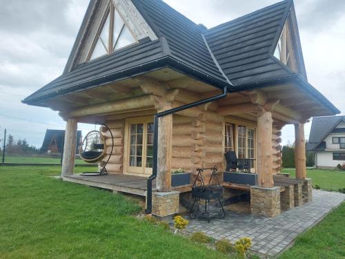 The cottage is two-level and can accommodate 8 people. The ground floor consists of a living room with a fireplace, a fully equipped kitchen and a bathroom. The first floor includes 2 bedrooms, a bathroom and a terrace. Internet is available throughout the cottage. Outside there is a place where you can light a barbecue, a playground. There is also a jacuzzi (exclusive) and a shared sauna.