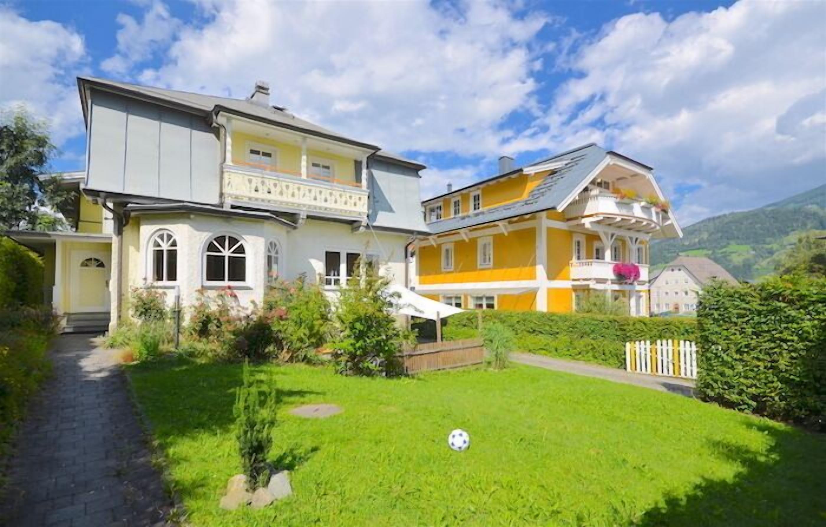 A 5 bedroom town centre Villa, for a perfect family holiday, with Ski lift and piste 50 m away.The Villa has 10 beds, 4 bathrooms (3 en-suite), full Wi-Fi, Ski-boot dryer, Ski store, garden store for bikes and 3 parking spaces.A large garden, views of lake and mountains makes it a lovely base for holidays throughout the year. The room layout of the villa makes it ideal for families to share.The lakeside beaches and walking paths are close by and the onsite parking makes loading vehicles easy.Explore the many ski areas within easy drive including Kaprun (12 mins.) or walking and cycling in the other seasons.First floor:- bedroom 1: double bed with full en suite bathroom WC; balcony with lake view- bedroom 2: large double bedroom; balcony with lake view- bedroom 3: large bedroom with two single beds; balcony lake view- bathroom with bath/shower, WC and basin- WLAN connectionGround floor:- the whole ground floor is open plan living area (no bedrooms)- kitchen fully fitted, breakfast bar/stools connected to dining area- dining area - large oak table with 12 chairs- living room (50" TV, DVD blue ray) with large sofa, comfy chairs; bay window with lake view- entrance porch with ski storage, ski boot/ walking boot dryer- hall with large hanger over radiator for drying jackets- WC and basin- WLAN connectionLower Ground floor ( rooms with very small windows):- bedroom 4: one double bed and en-suite shower/basin- bedroom 5: large bedroom with two single beds, en-suite shower/basin, TV and DVD player- WC - in lobby between the two bedrooms- washroom with washing machine, hangers and ironingThe Villa is central to amenities:- 150 metres to shops, ski and bike hire, restaurants and apres ski bars- beautiful Zeller lake is viewed from ground and first floor, 200m walk away- the Hallenbad Centre (500m); swimming pool, sauna/wellness and ice skating- bus and train station 150m away- CityXpress lift (350m) ski hire and ski lockers- the famous ""Kupferkessel"" bar/restaurant is on corner of this road- night skiing Tues/Wed each week on ski slope next to Villa- Salzburg Airport is 80 km away direct by Postbus 260 or by frequent City Link trainsTravel on main roads kept clear of snow (no chains neededin town centre).Zell am See is regional hub for trains and buses, making it ideal for walkers and cyclists exploring the wider area.Refundable Security Deposit: € 700,-