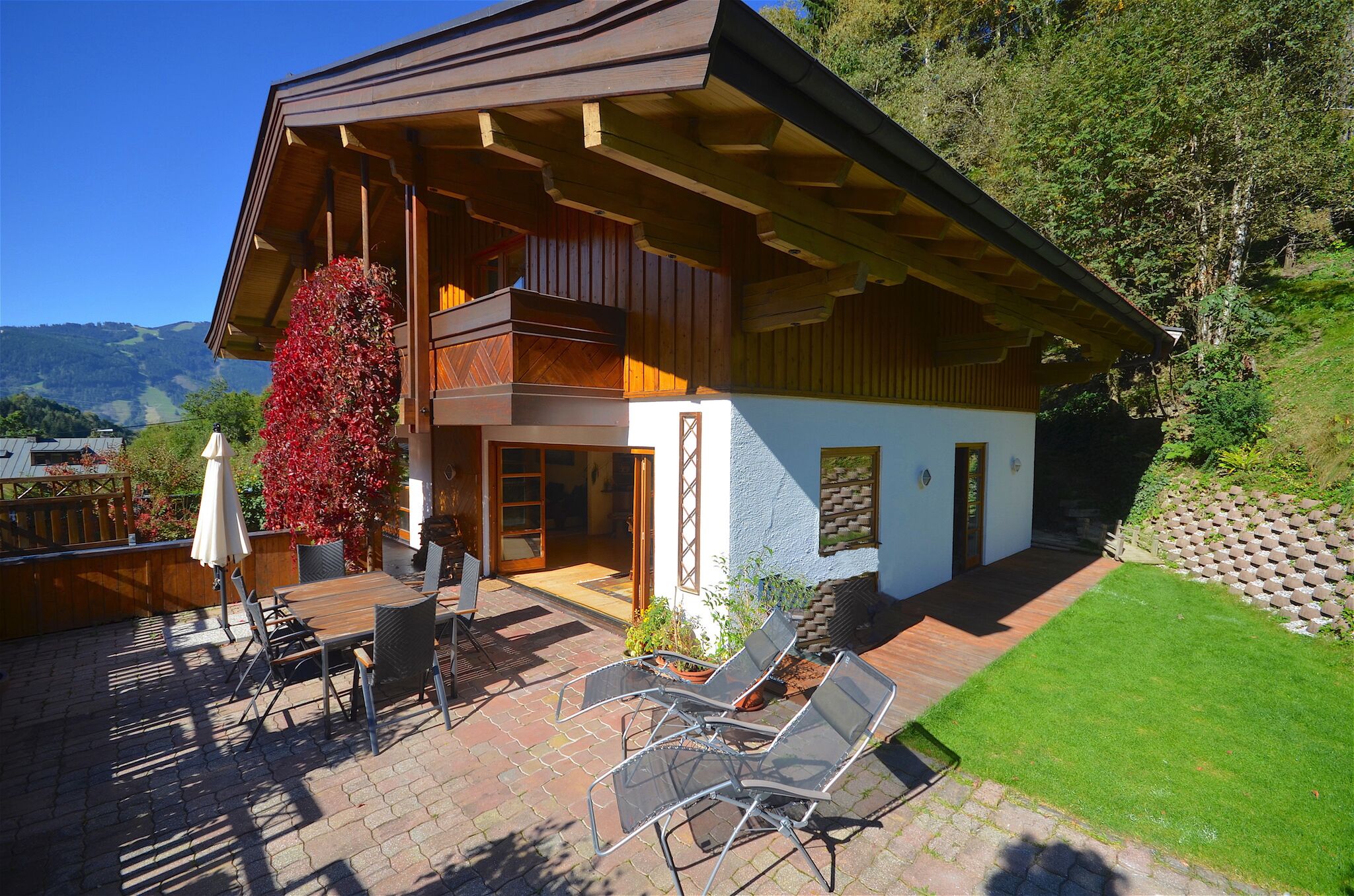 - south-facing and covered terrace with seating, loungers and panoramic view of the Kitzsteinhorn and Imbachhorn mountains