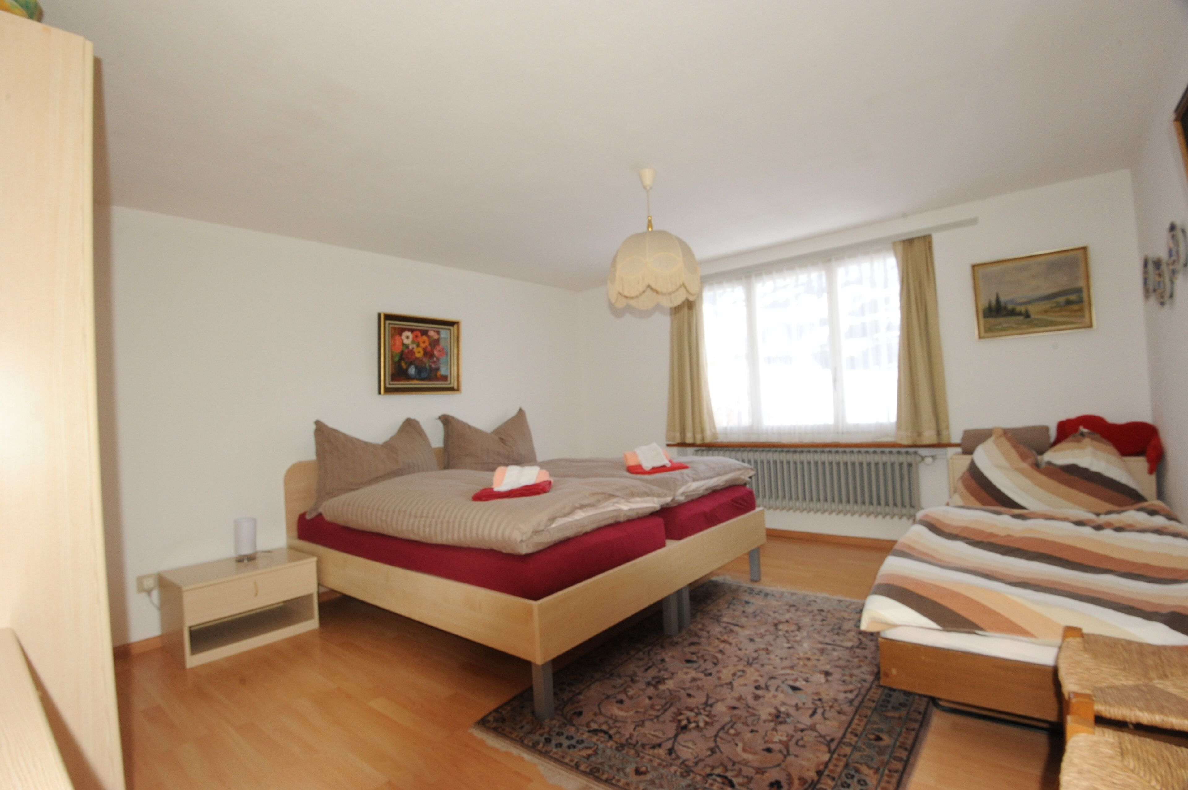 Bring your whole family! This large chalet apartment on two floors with 4 br for 8 adults & 2 br for 5 kids offers enough space for everyone. One bedroom, the kitchen and the living room are on the street level and are thus convenient for people that are not able to walk stairs.