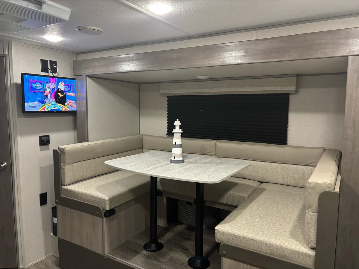 This studio camper has one queen bed & one twin size bed. You will have access to internet, smart tv & AC to cool off these hot summer days. Full equipped kitchen ready for those who like to spend their time cooking.