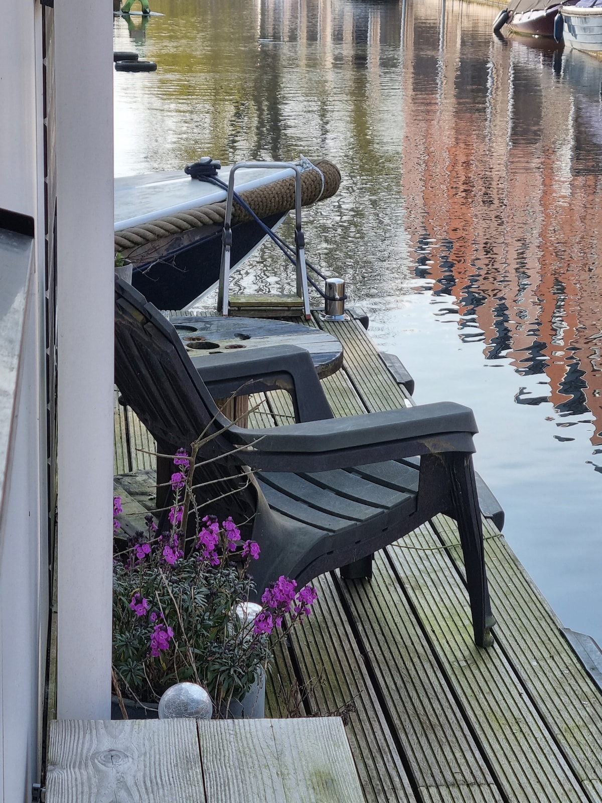 Unique and cozy experience on a houseboat. All day (with nice weather), sailing traffic passes by and you can also sit comfortably on the terrace.