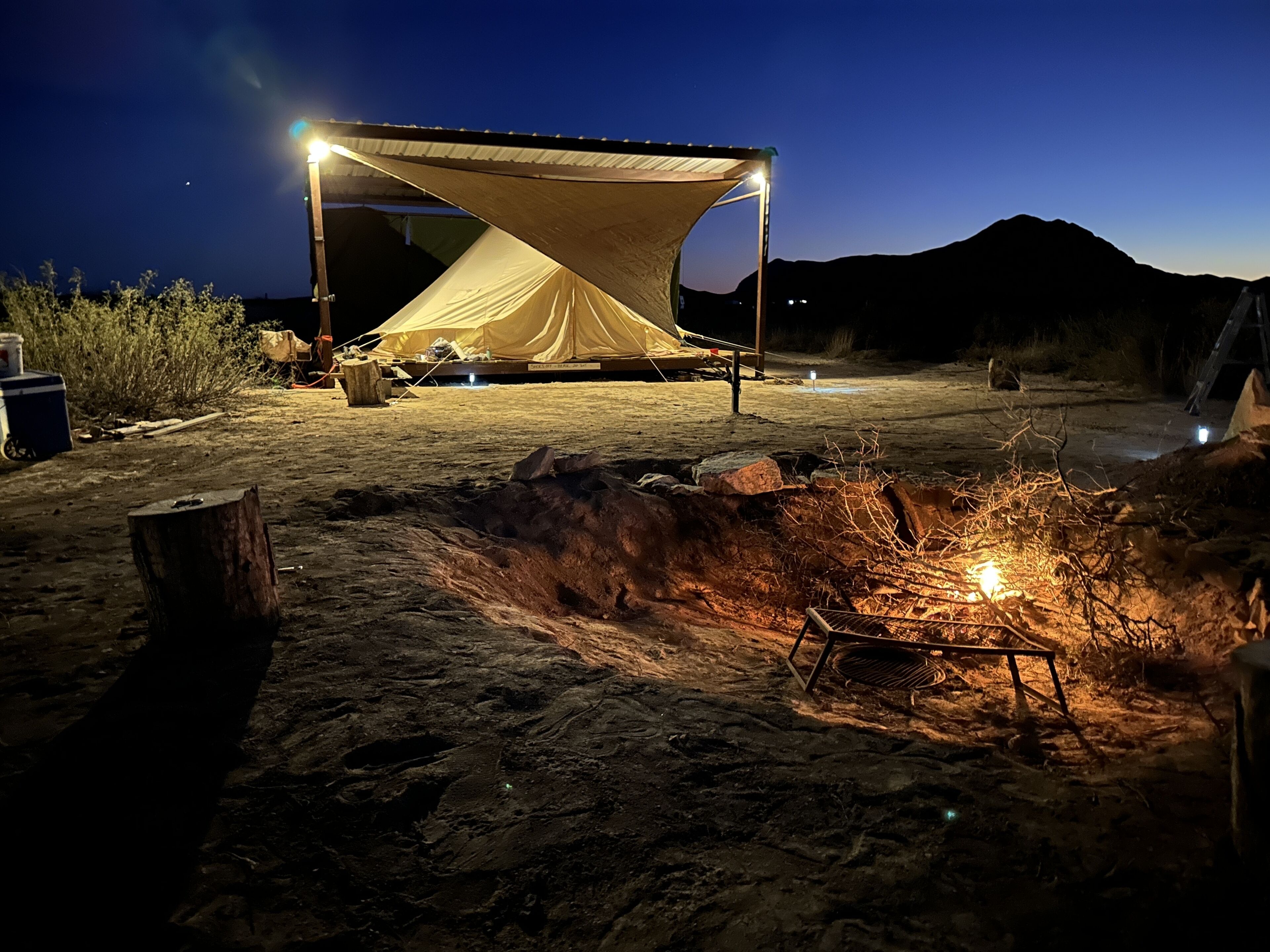 Discover the beauty of West Texas in this cozy 1-bedroom glamp tent experience. The space features a nice queen bed, a single bed and a cowboy cott for the little ones or your friend. It can comfortably sleep 4 but the 4th will need to bring their own linens. With WiFi available, guests can stay connected during their stay. Escape to this enchanting retreat and immerse yourself in the natural surroundings. We'll be available to answer any questions while you stay at our place. We are 22 mins from ghost town. We’ve done this because we like our peace and quiet. Please don’treview us with a bad location. We live here to stay away from Ghost town as it’s too rowdy. We’re also 22 mins to to Big Bend entrance. Please do not leave cigarettes, glass or beer cans in fire and or discarded on property. If you have pets pick up after your pet. If we find poop, cigarettes beer cans or trash after your stay there’s a $100 fine.
