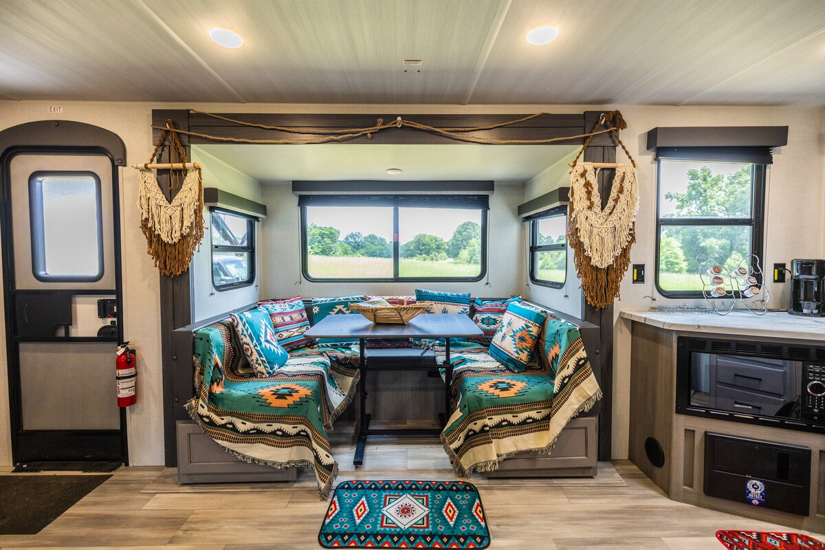 Unwind in our stylish RV, accommodating up to 6 guests. (2 people in queen bed and 2 on pull out bed and 2 on our twin size floor mattresses)