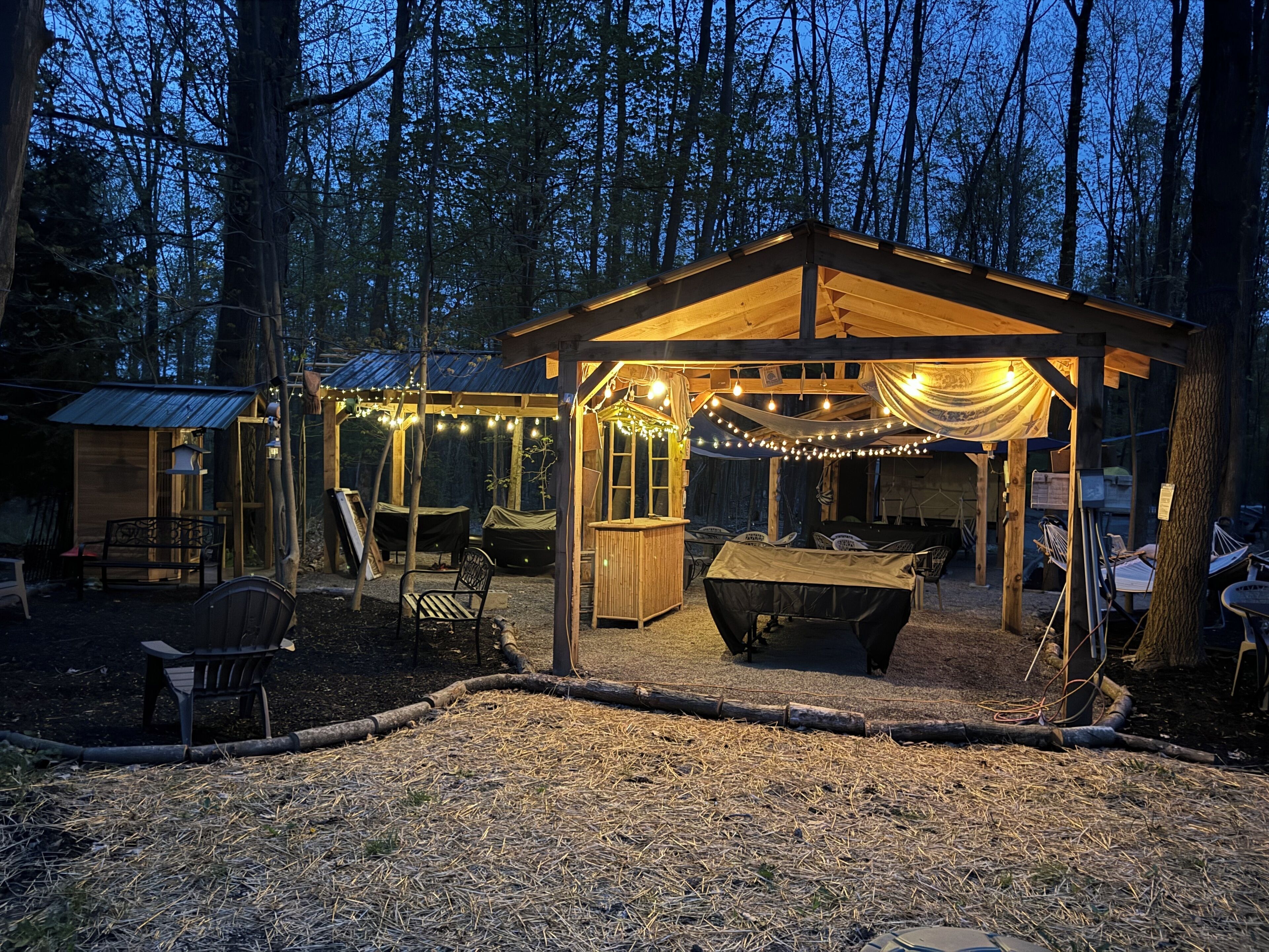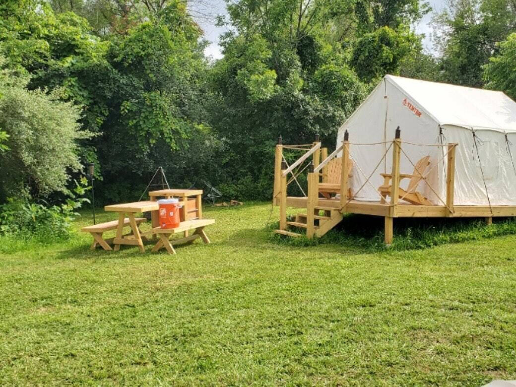 Enjoy sitting around a beautiful fire at night and your own hot tub to relax in. Try camping where everything is included. We have many amenities to choose from like a zip line, pool table, outdoor movie, theater, foosball, table, ping-pong, air hockey, badminton/ volleyball. We also have an infrared sauna. My staying is stuffy hotel when you can enjoy peace and relaxation!