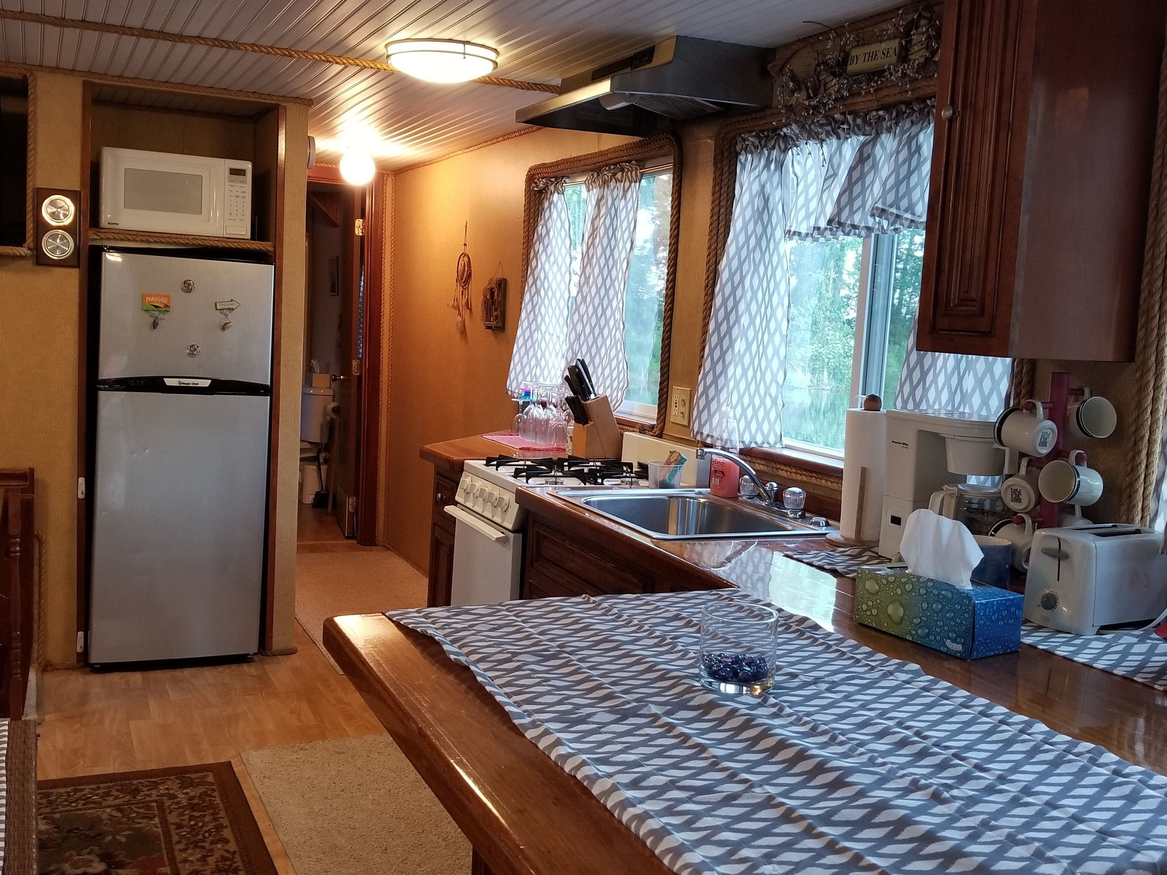🔥 Outdoor Fun: Take advantage of the fire pit, BBQ grill (please bring your own charcoal and guests are responsible for refilling propane), and outdoor dining space while enjoying the charming camp feel. Kayaks and a private dock are also available for water adventures. Dock can accommodate 1 boat tied to the dock. Please bring bumpers.