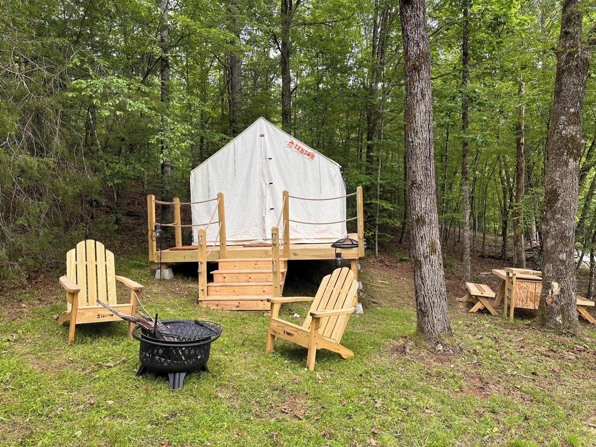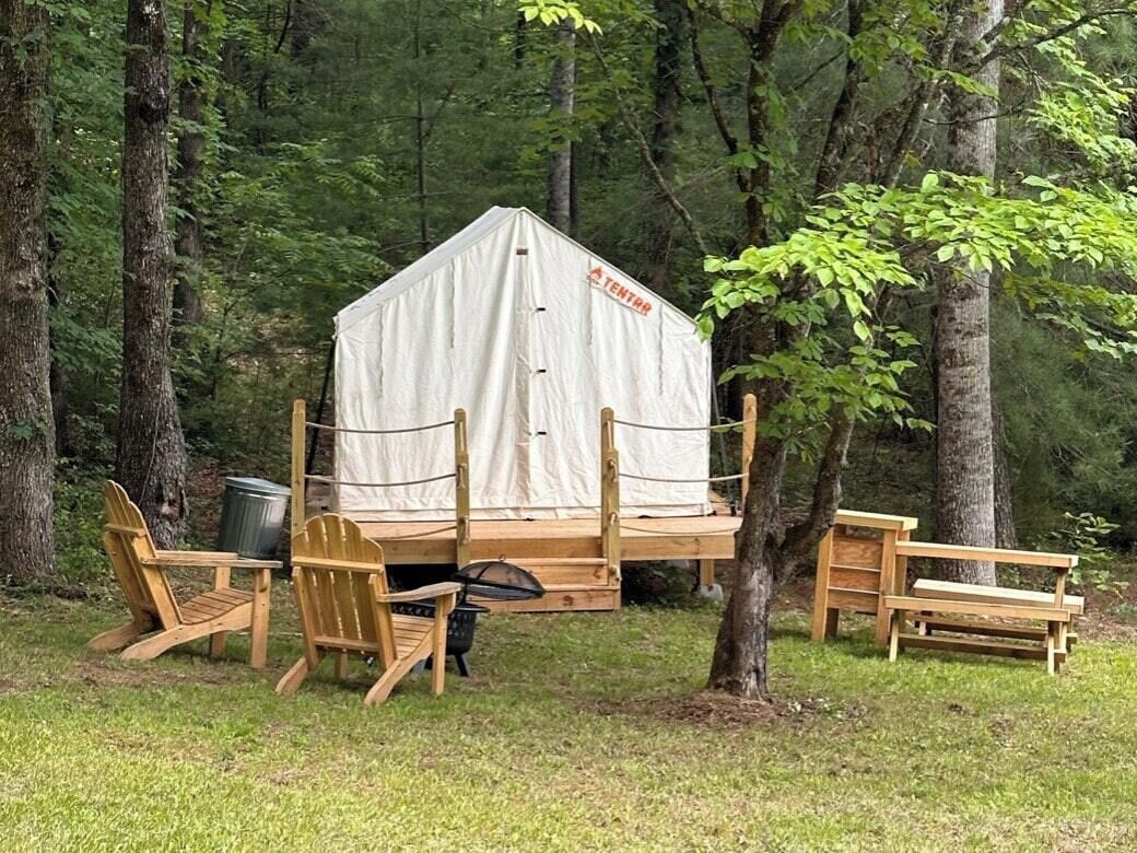Escape the hustle and bustle of everyday life! Quaint and cozy tent under the stars, just 11 miles from Downtown Franklin. Totally Private in the heart of the Smoky Mountains. Perfect for a romantic getaway or a quiet weekend away!!