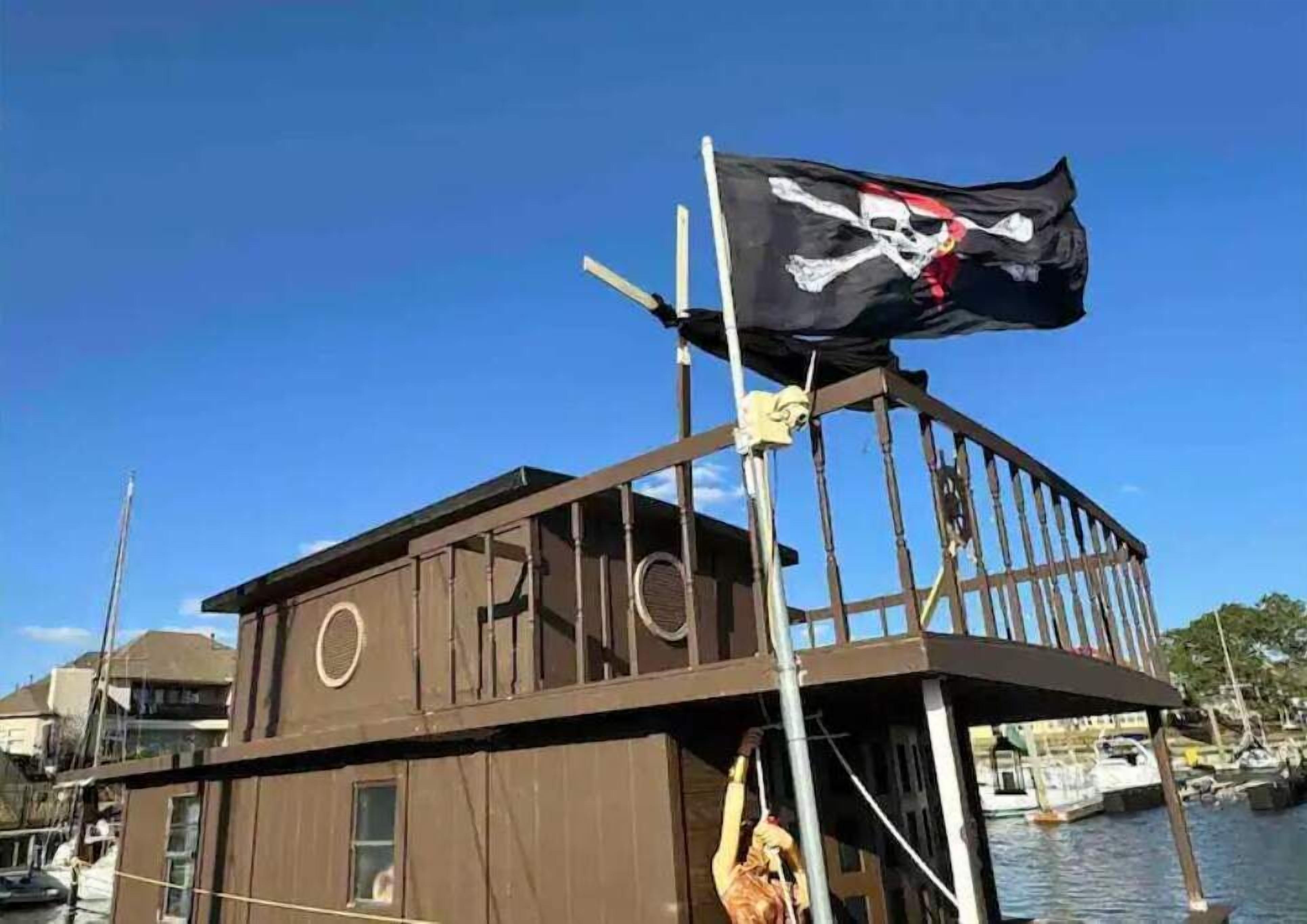 Enjoy the most beautiful views as you float peacefully on tranquil Clear Lake. A picturesque marina aboard a pirate and mermaid themed houseboat. Sleep and dine over the water.