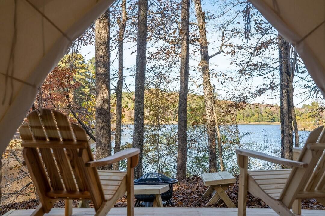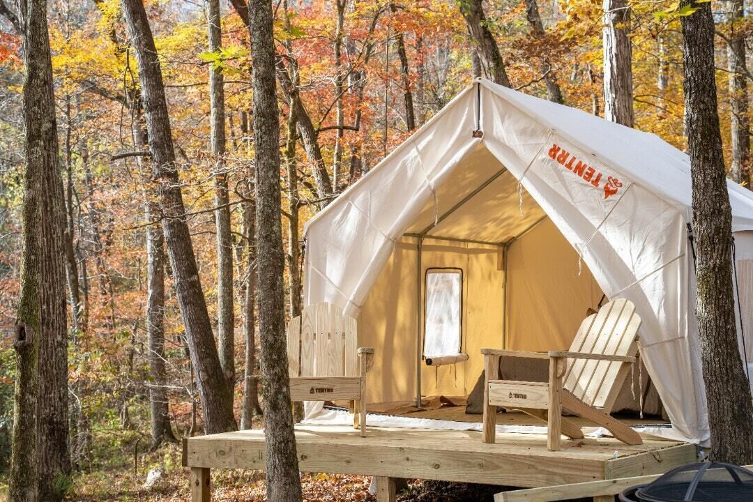 - "The property was a little hard to find in the dark. It's not far from the place where the restrooms are. Didn't feel like I was too close to the other sites." - "The Tentrr guy was great! It would be good to have a bathroom closer to tents or a port a potty by each tent or have like 4 in an area just for Tentrr clients. The shrubbery could've been trimmed a little better right by tent area. We really did enjoy our stay and would recommend again. The main bathrooms could've been cleaned better toilet paper ran out a lot."