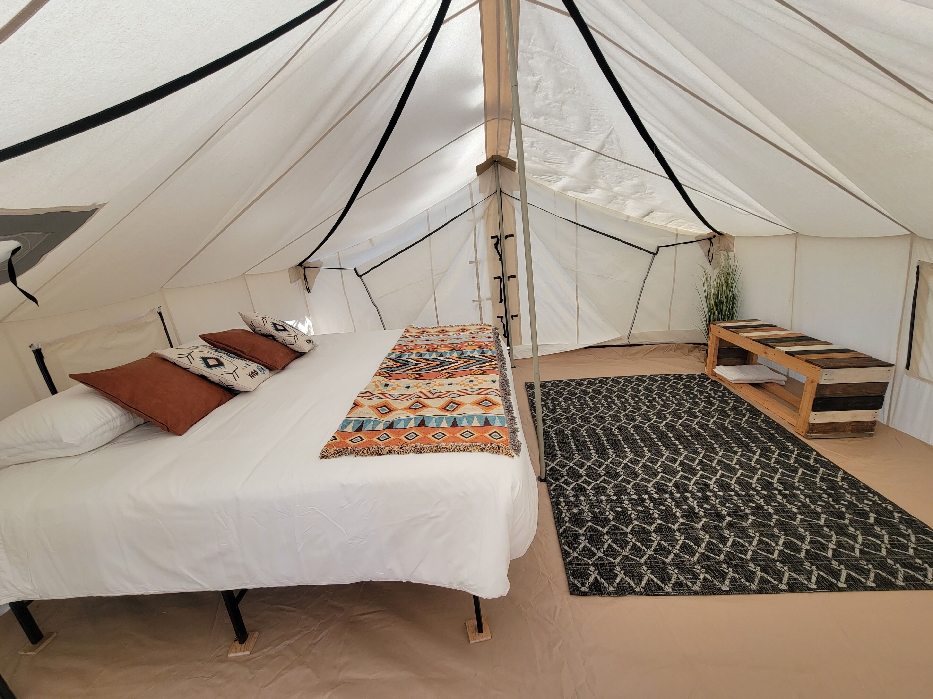 We opened to our first guests in October 2020 with only 3 bell tents, 1 bathroom and a kitchen inside a tent. Even though we have grown and improved the facilities, we are still a small husband and wife owned and run business. You will see us working and cleaning. When you call, email or have questions, you will be talking with us.