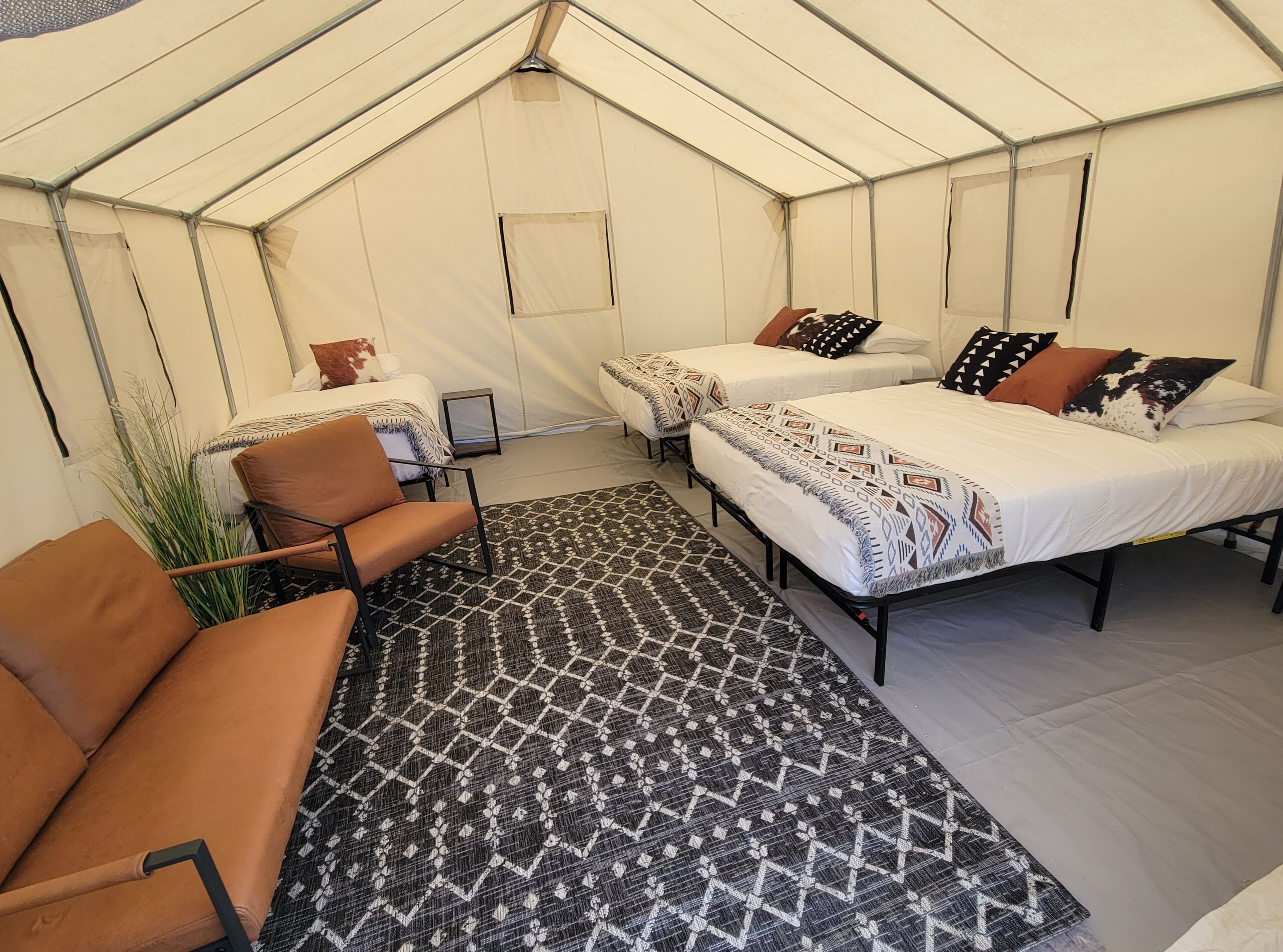 - "Nice stay out in the woods. Clean tent and comfortable setup. Was a good time with my kids." - "Unique and fun, the only problem is other guest get quite rowdy!" - "It was alright. Nothing special unfortunately. The area around camp was not well groomed - floor of the tent wss very uneven as well as surrounding areas. Restrooms/shower was fine. Sheets had hairs in them and floor of tent looked like it had not been cleaned very well. Underwhelmed by thos experience for the price which I felt was really high for what you get. I would say you'd do better to just camp yourself, or just find a hotel. "