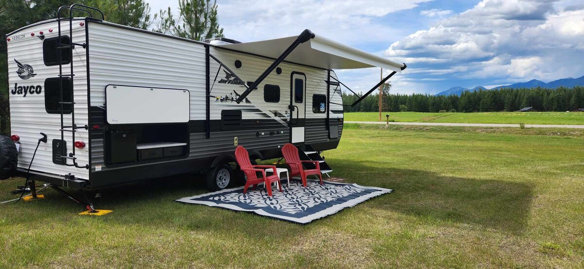 Come relax and enjoy all that Bigfork has to offer while staying in this brand new comfy and clean 26' travel trailer with beautiful views of the Swan Mountain Range. Bigfork and Flathead Lake are just 7 miles away, Echo Lake, and the Swan and Flathead Rivers are all within a 10 minutes drive. If you love hiking, Jewel Basin and Glacier National Park can both be reached in 45 minutes. Way too much to list for those of you who want to escape the busy life, and come relax in nature!