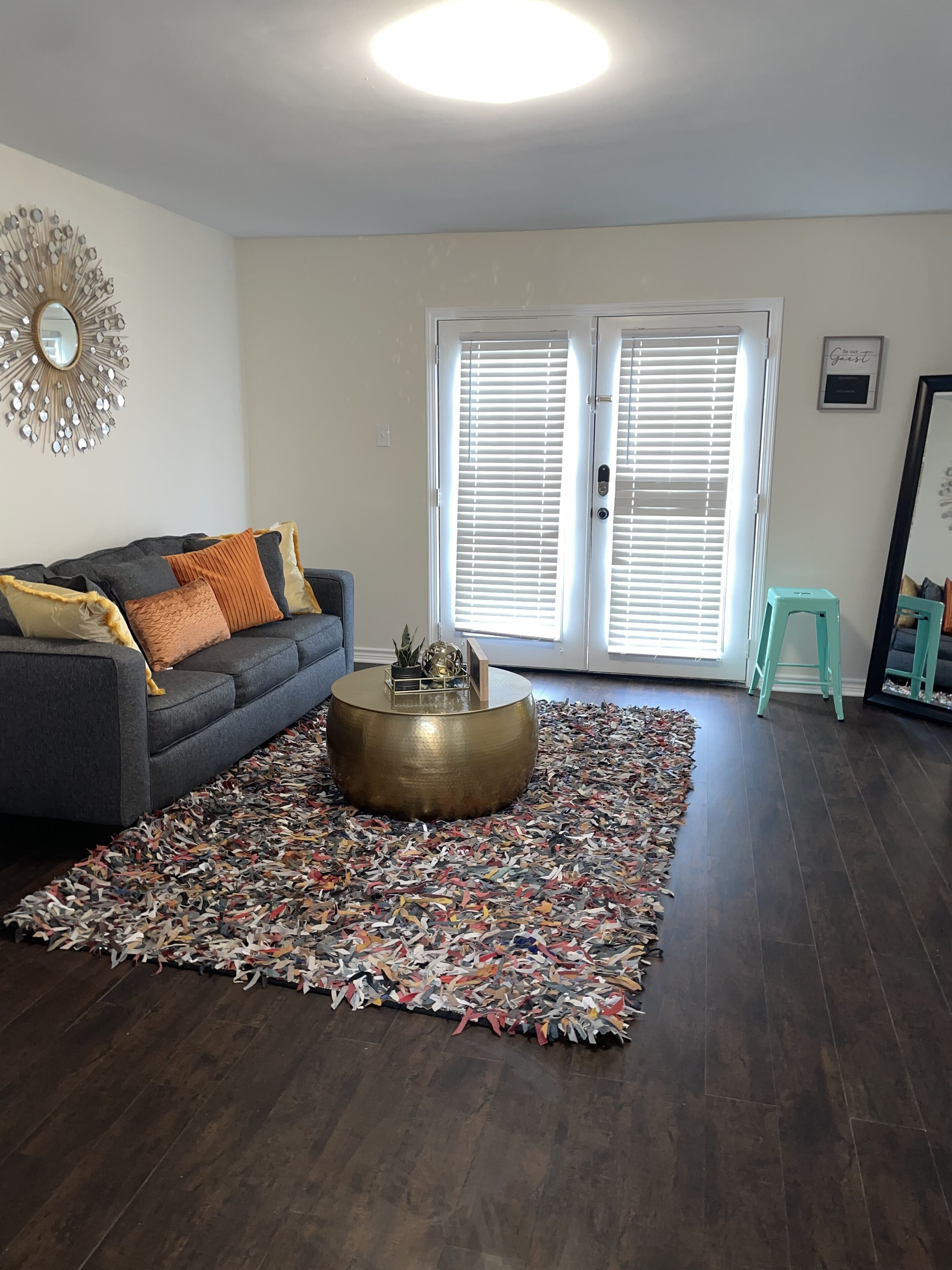 - "The rug is cute in the photos but in reality it's full of debris: wads of hair, jagged bottle caps, broken dental picks, etc. Though the apartment itself was cute, the rug really took away from it. The walkway was very unstable for our traveler in her late 60's. The description is a bit misleading. The whole house sounds like there is a daycare and a gym surrounding you. If you enjoy peace and quiet...or sleep, this is not the place. The price was fair but there is literally nowhere to park and this is something travelers/renters should know up front."