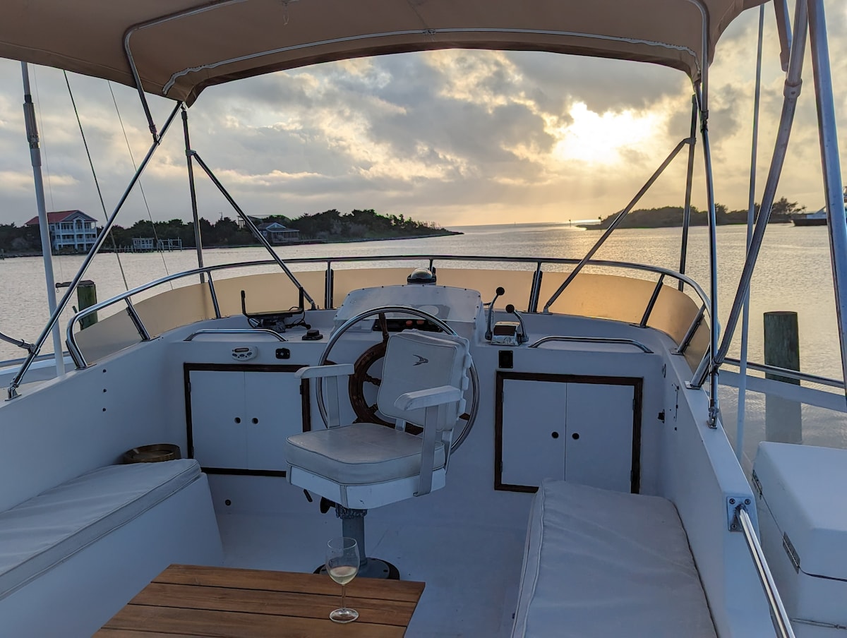 Enjoy unobstructed water views and amazing sunrise. Located just off the Intercoastal waterway. Make your Outer Banks stay the most memorable one yet. This spacious 44ft boat has multiple decks perfect for watching marine life, sunsets, and catching some rays. Shallowbag bay marina is centrally located , close to restaurants, shops, art, music, water sports, and more. In addition to the views there is a pool, gym, restaurant, and billiard for your added enjoyment. Come aboard the Easy Times!