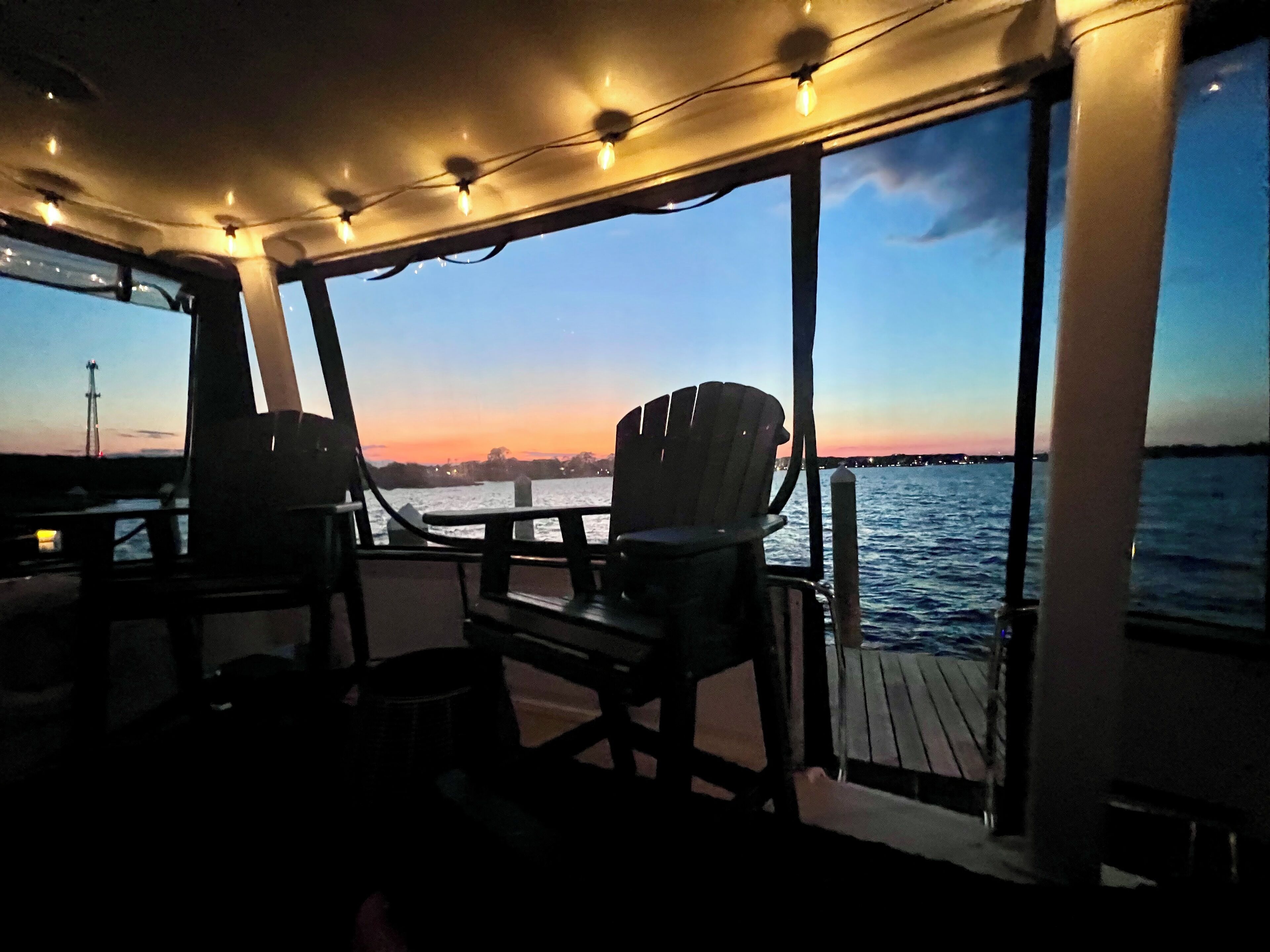 The boat is docked at the Down Creek Condos right on Silver Lake. It is prime location for sunsets on the sound and right in the heart of town. You are literally a step away from all the action.