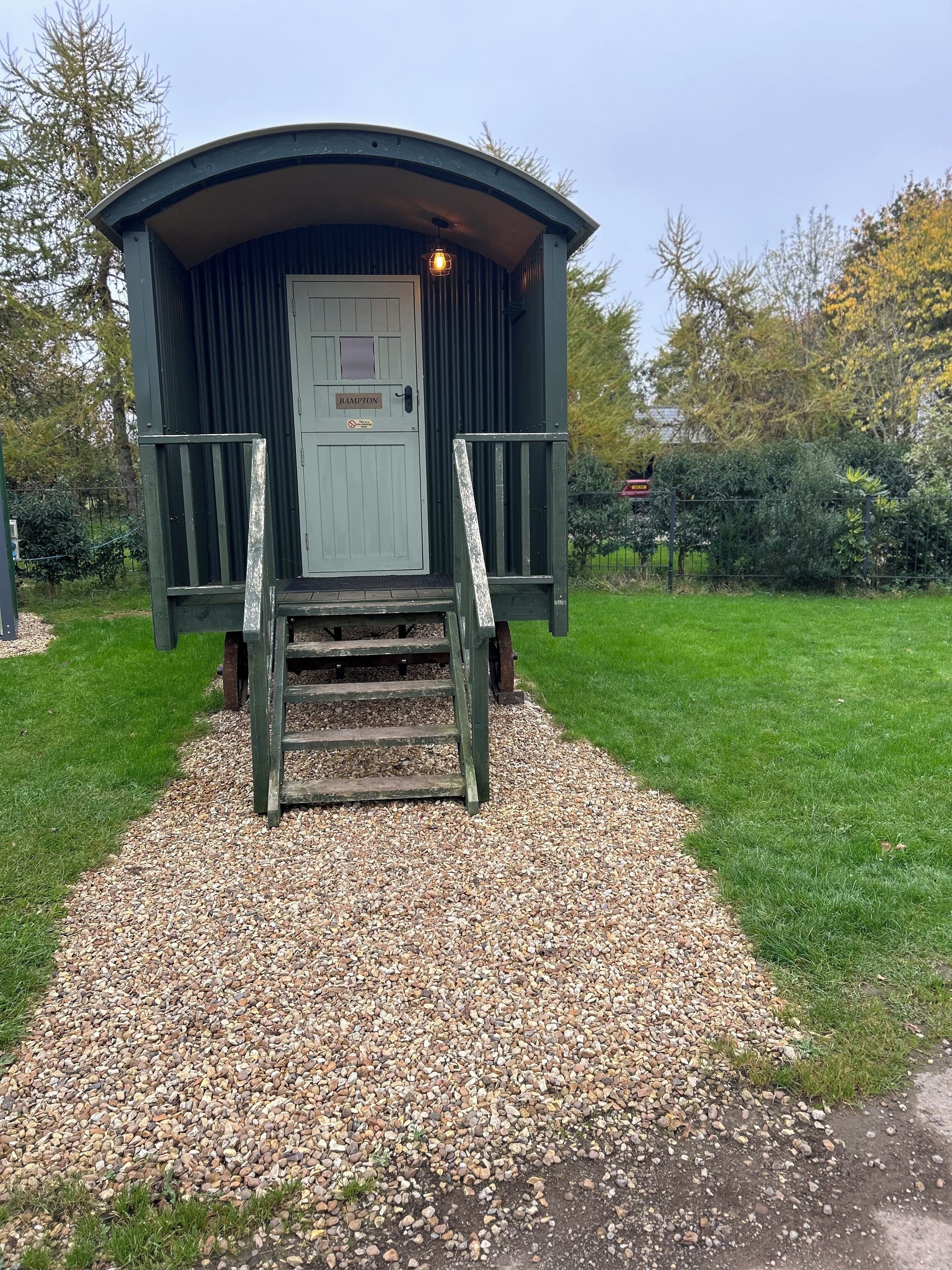 A shepherd’s hut for two in the countryside setting campsite.