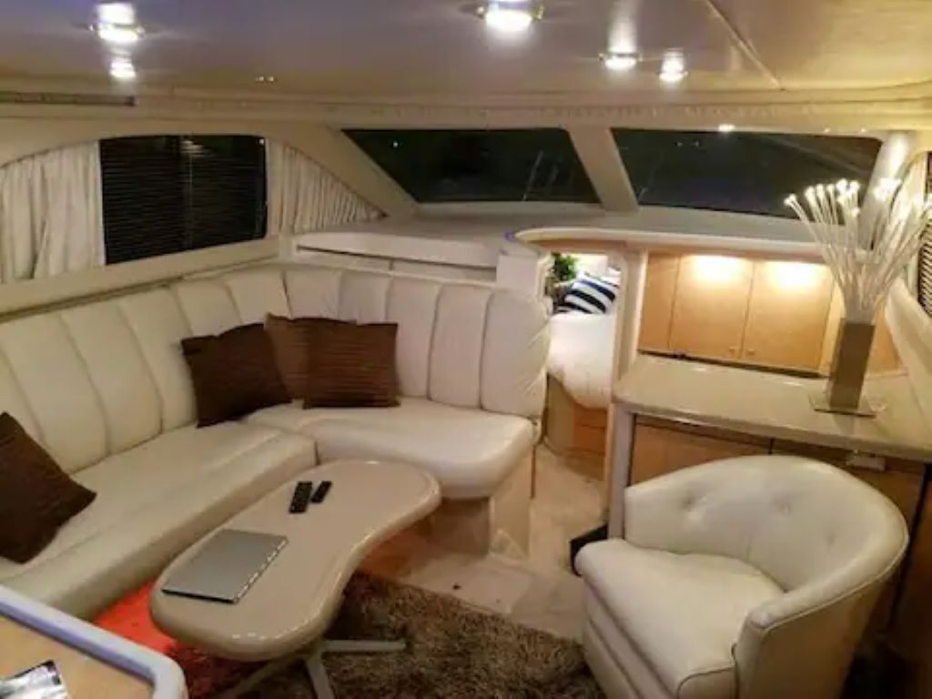 You will have full access on the Yacht, including the interior Salon, Galley, Master Stateroom/Private Head, Guest Station/Forward Head; as well as the exterior Aft Deck, Bow, and Fly Bridge. You will also have access to the Marina Facilities, including 2 bathrooms, shower and washer/dryer