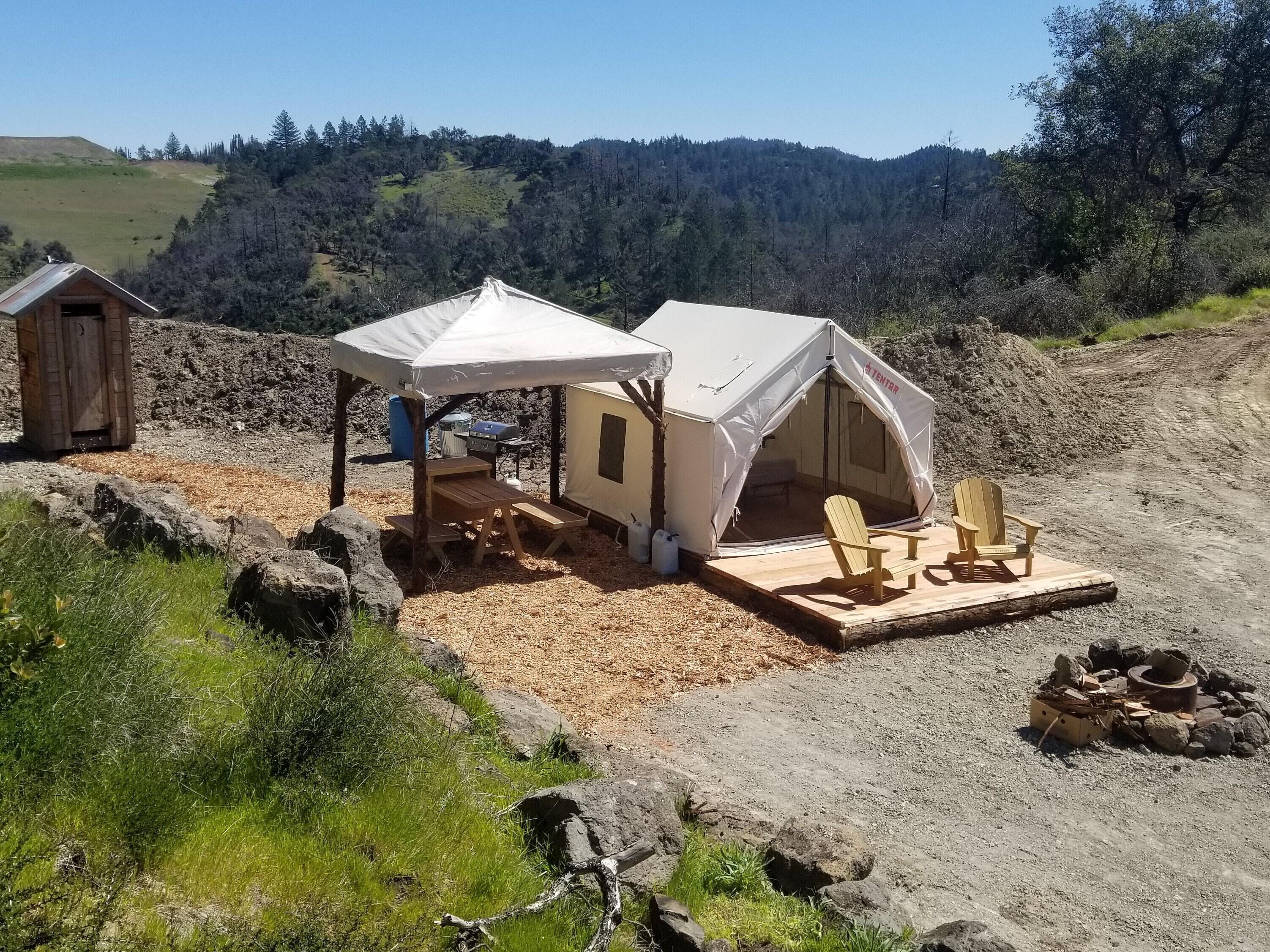 Up in the hills that rise above Santa Rosa and the Sonoma Valley, Mystic Mountain is a perfect retreat tucked away from the hustle and bustle in the valleys below. We're a family hobby farm with a vegetable garden that often has goods to harvest. The property is also located in a unique location that has had a very active geologic history. Compressed volcanic ash from an eruption millions of years ago make up the majority of the site's topography, and if you look hard enough you'll also find pieces of petrified wood. An outhouse has also been installed for your convenience and privacy! So come enjoy this slice of heaven located down the road from Safari West, Linked Vineyards, and many other local wineries.
