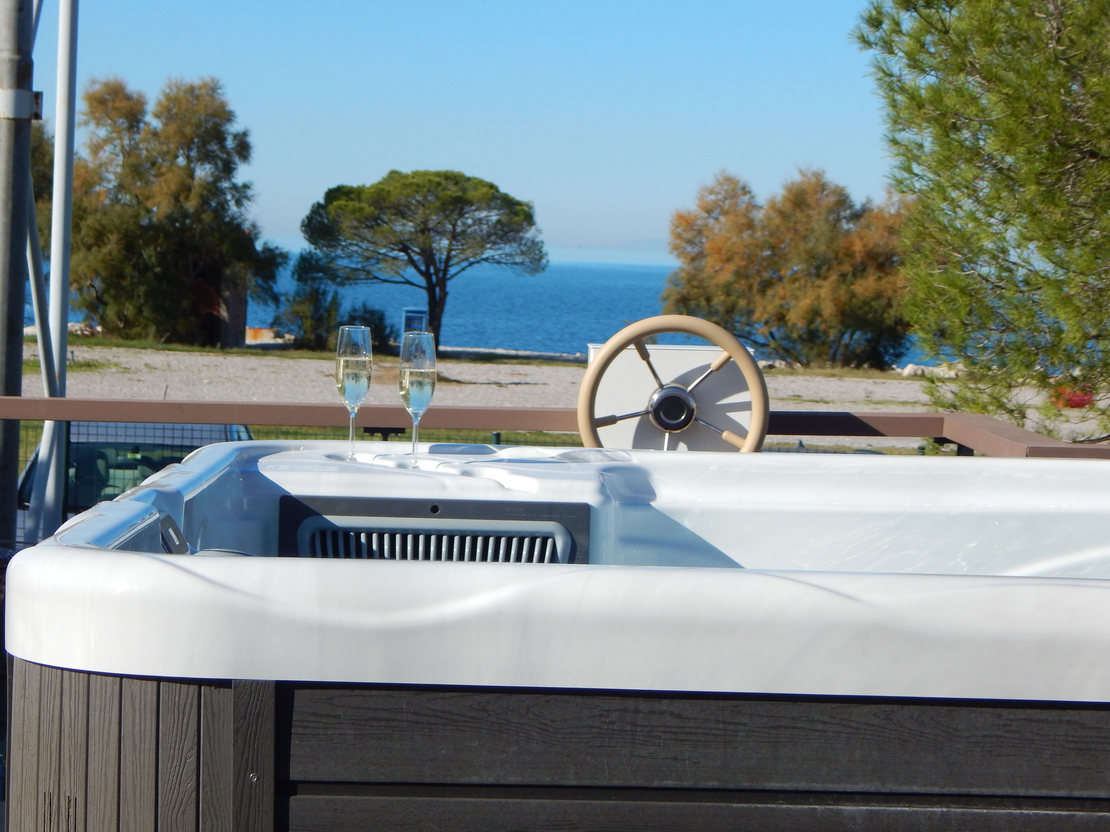 Experience the air-conditioned floating house Miramare, hosting up to 6 guests. Let yourself be swept away by the tranquil rhythm of life on the sea. The house includes a fully equipped kitchen, a cozy living area with a sofa bed and dining table, two bedrooms, and a bathroom. Step onto the terrace, where outdoor furniture, sun loungers & a hot tub await, all against the backdrop of an enchanting sea view. Your stay is complete with provided linens, towels, LCD TV & free WiFi. Warmly welcome!