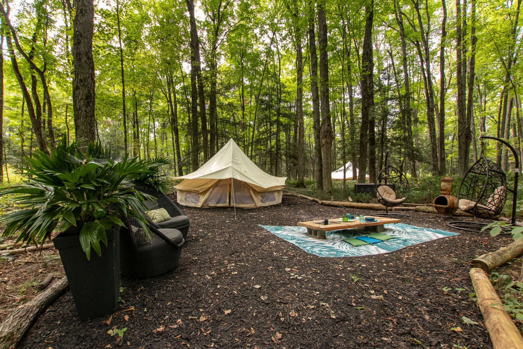 The Taiga is a sanctuary on 10 acres of land. 1 /2 Tents on sight! (Check profile)We have a gated outdoor vegetable garden our guests can enjoy, along with various seating, dinning tables and hammocks in the forest. Solar heated outdoor shower/bathroom along with a common area kitchenette our guests can prepare coffee, keep their food cold in a fridge, and utilize electrical outlets and board games.Located only 40m from downtown Toronto, The Taiga is the perfect escape and a short drive away.