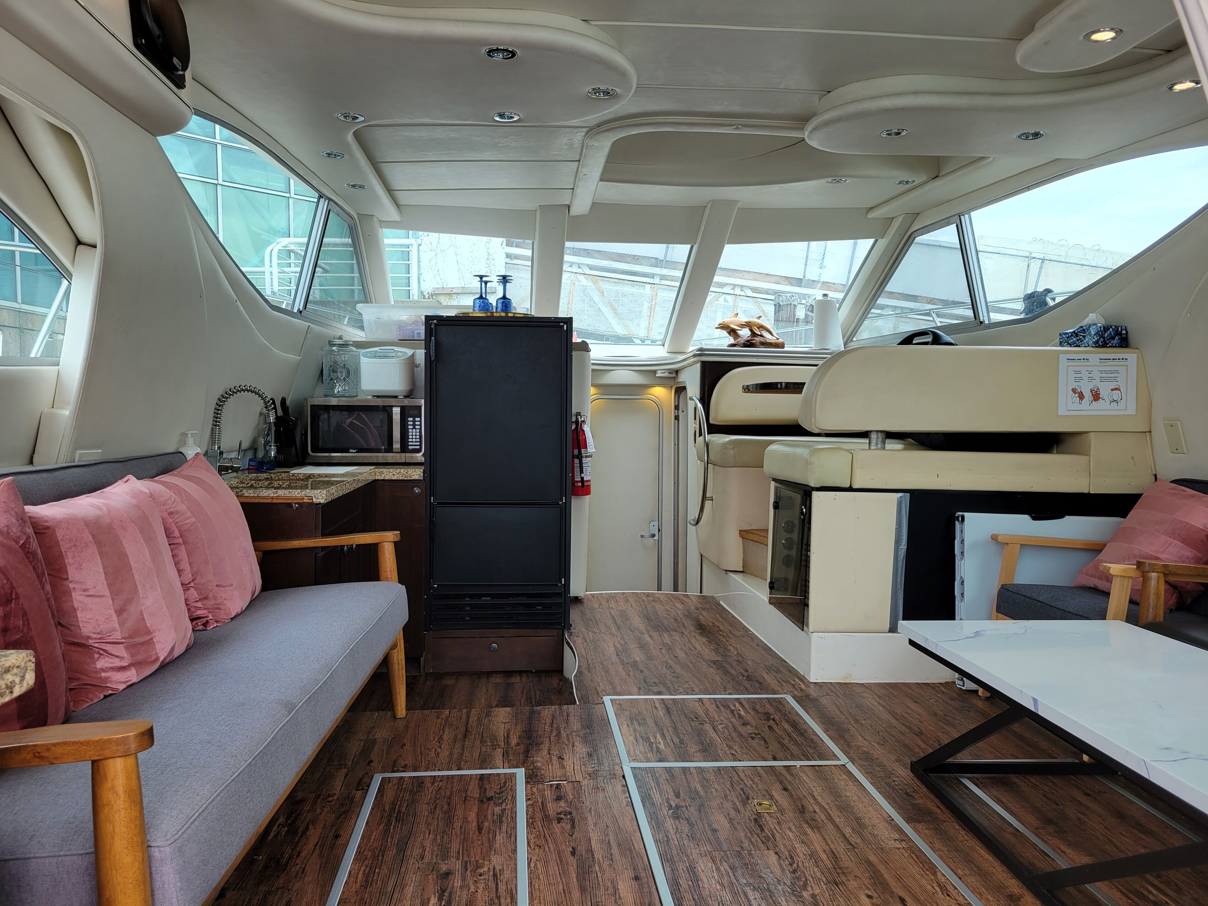Guests will have access to the whole inside cabin of the boat, with the exception of a small locker in the bow. Guests will also enjoy access to the rooftop patio as well as back patio.