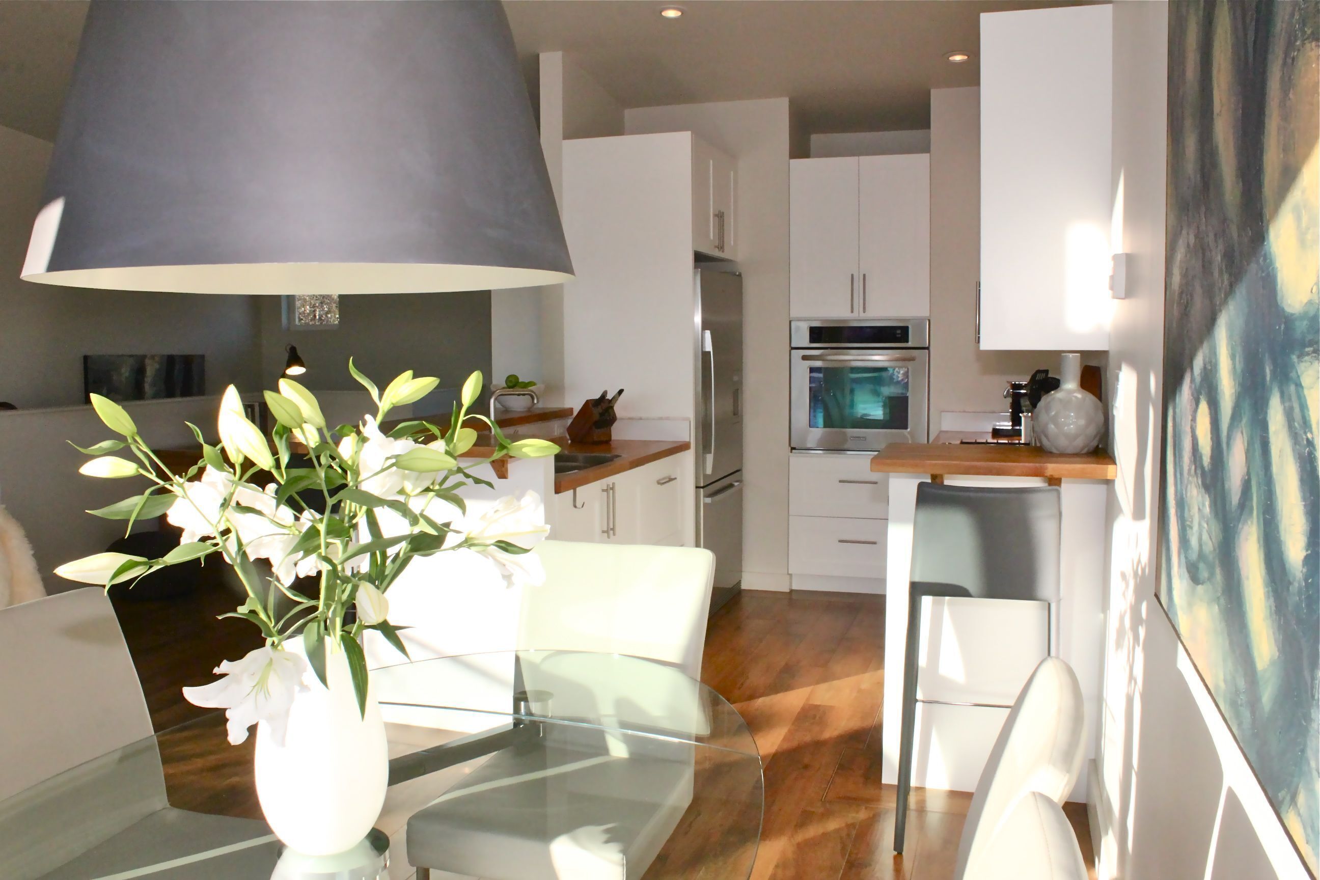 You’ll find exquisite views of the marina, Burrard inlet and downtown skyline from this beautifully appointed, modern float home. Watch wildlife from the heated deck, hop out the front door for a run/bike along the waterfront Spirit Trail, or head downtown on the Seabus for great dining and entertainment.