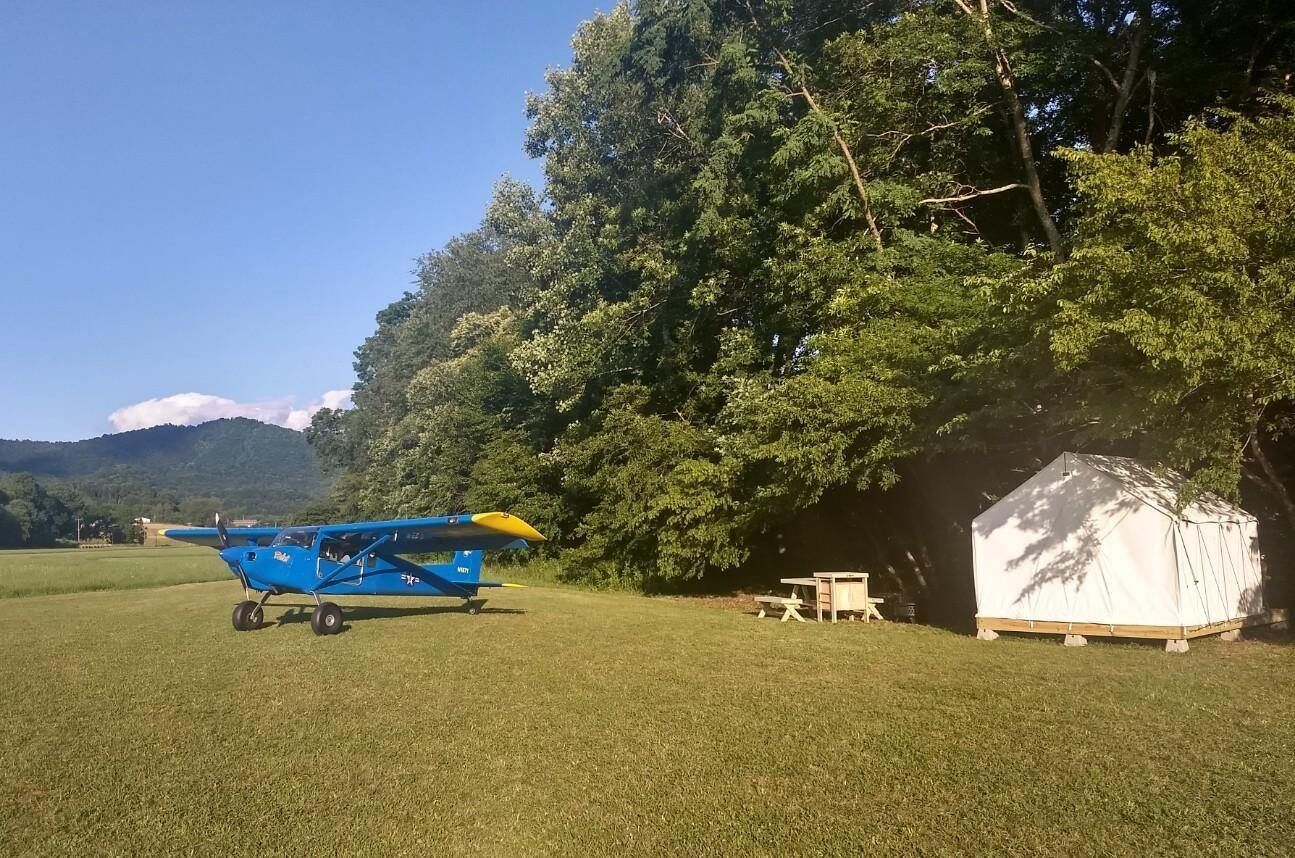 Fly In Glamping Getaway at the Hinton-Alderson Airport (WV77) overlooking the Greenbrier River. Cub, Stearman and Skyhawk sites are available