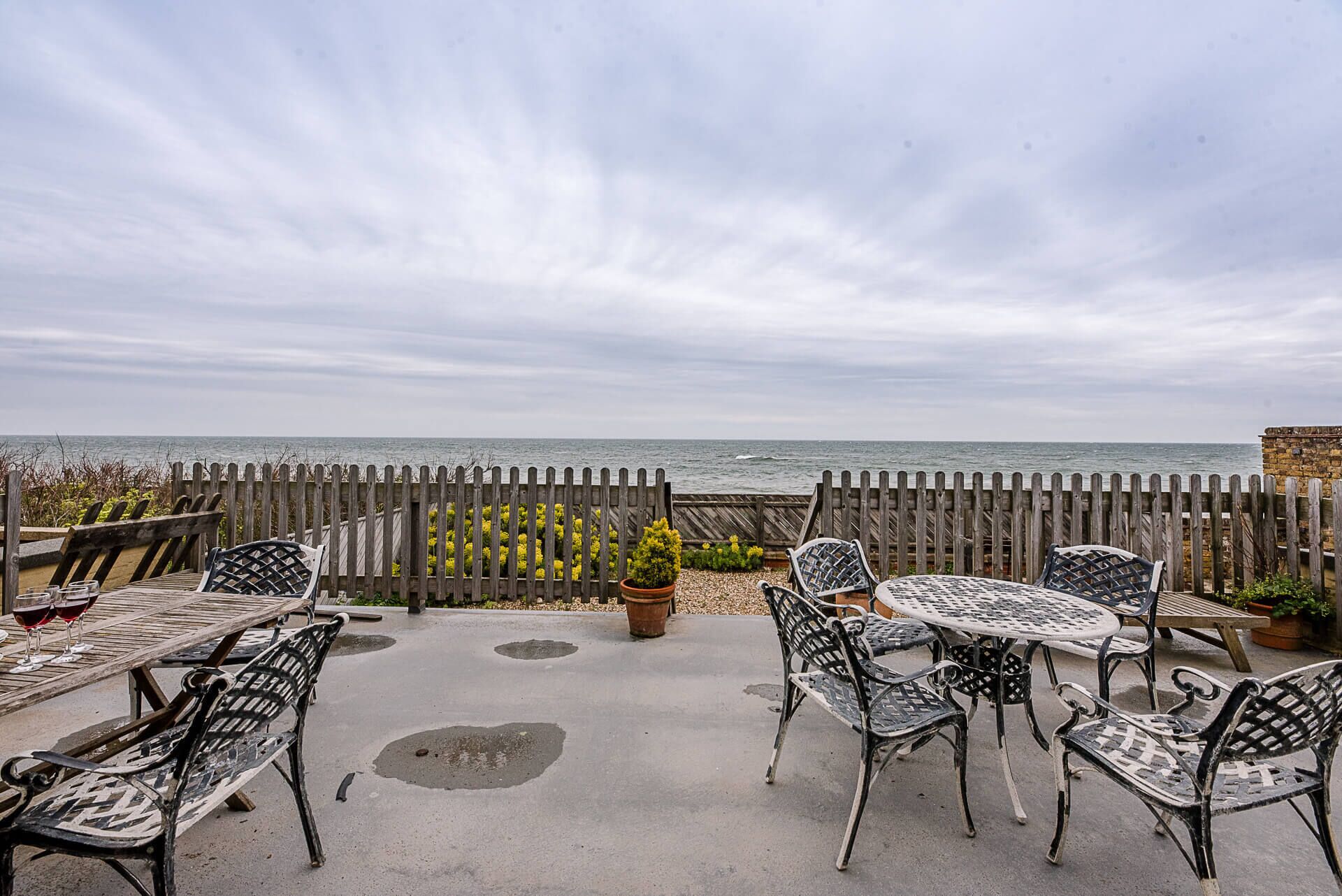 The Roof Terrace over looks the beach and is furnished with outdoor table and chairs.