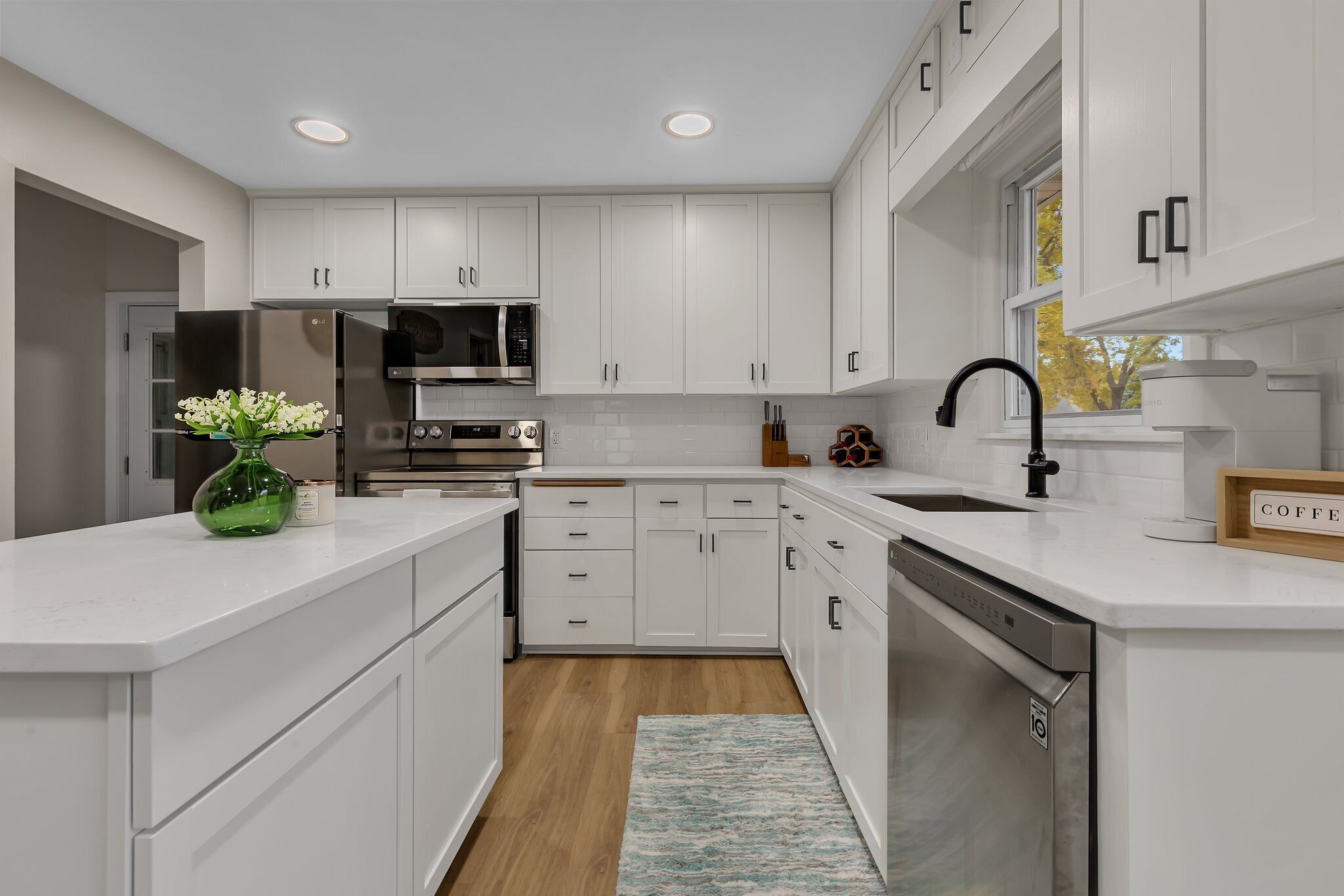 Enjoy our brand new, and fully equipped kitchen, with a large island and open cabinets so everything is easy to find. Coffee drinkers will love the choice of a Keurig, coffee pot and even an espresso machine.
