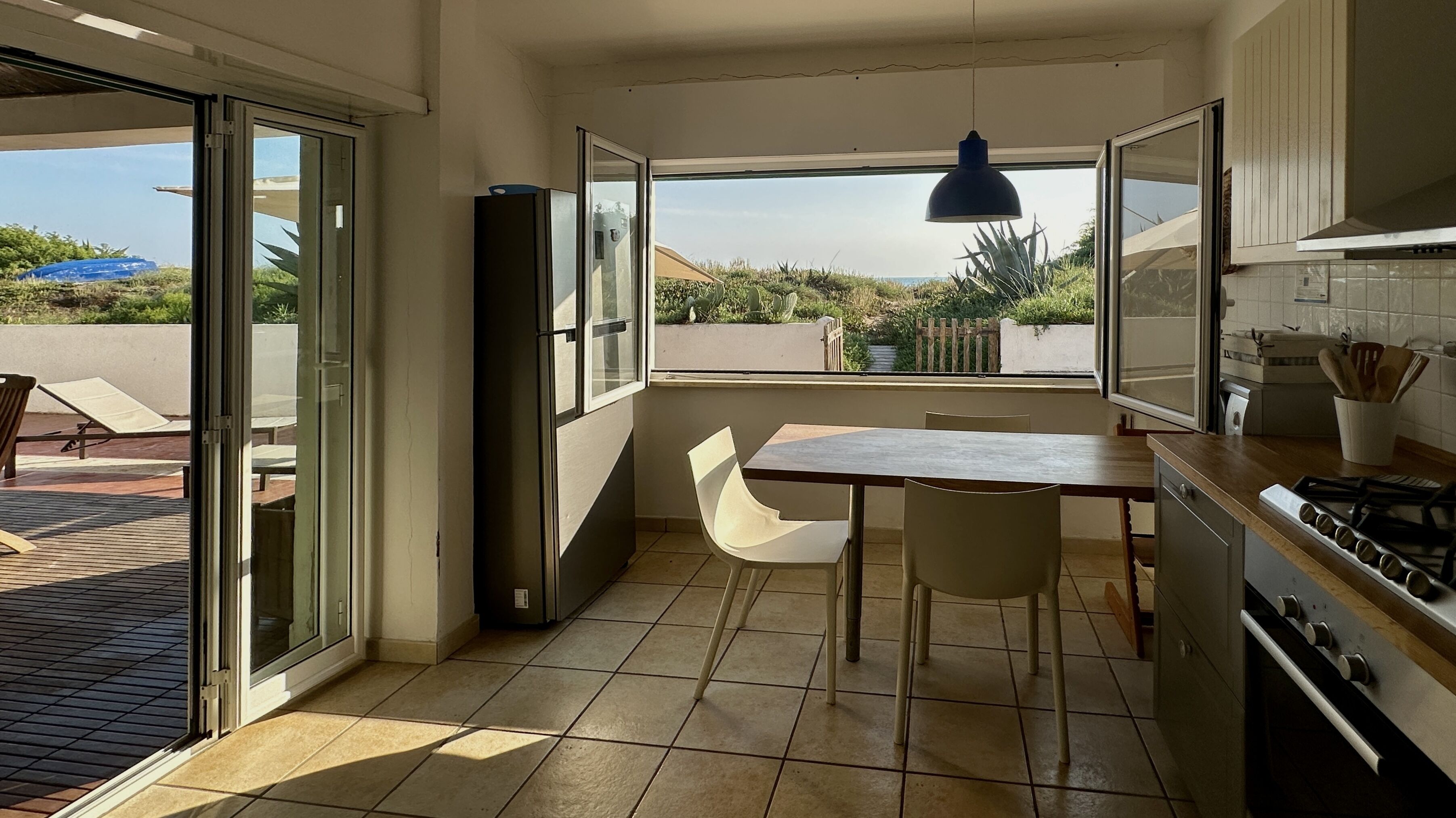 The house has the following amenities: safe, wifi, bed linen, towels and table linen, washing machine, hairdryer, television, radio-CD, VCR, dishwasher, dishes, toaster, kettle, coffee maker-filter ,. Indoor dining table for 4 and outdoor dining table for 10. Sofas and armchairs both indoors and outdoors, sun loungers, hammock, dog bed.