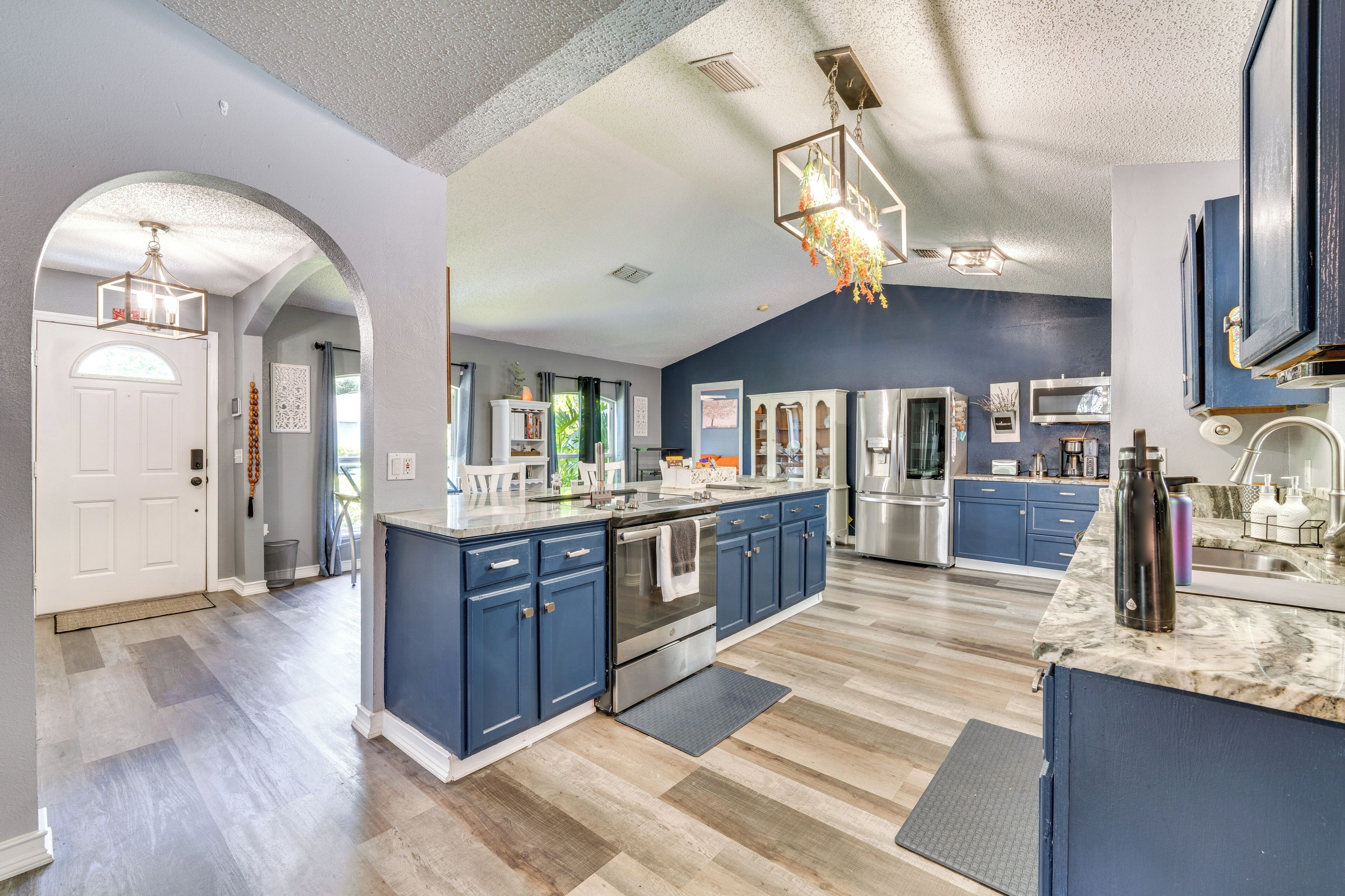 This warm eclectic nest gives you feelings of nostalgia, bundled into a refreshing living and lodging experience. Settle in with caution... you may never want to leave! This is the premier elevated golf-centric living experience in Orlando. Enjoy a creative design, fully loaded with artifacts that take you on a journey through the decades. Authentic 1960's mid-century modern furniture, billiards table with upgraded Championship felt, FULL WET BAR with bar sink and counter top, authentic rattan, genuine retro prints and art, vintage Vinyl listening lounge area complete with your own private collection to enjoy or "BYOV" and Bring your favorite vinyls to showcase your own personal rhythm within the space. Let your eyes roam and take in the wide-range of art, vintage books, vintage games, fixtures and unique pieces. Custom trim work, a rich cornucopia of colors subdues you into a cozy calm where you can create, express, and relax. Fully loaded chef's kitchen includes, stainless steel cookware, brand new appliances, a plethora of quality spices, marinades, and high-level culinary accouterments [we take your kitchen experience very seriously], quartz counter tops, and local menus showcase the areas TOP-SHELF recommendations. PRIVATE CHEF DINNER UPON REQUEST!