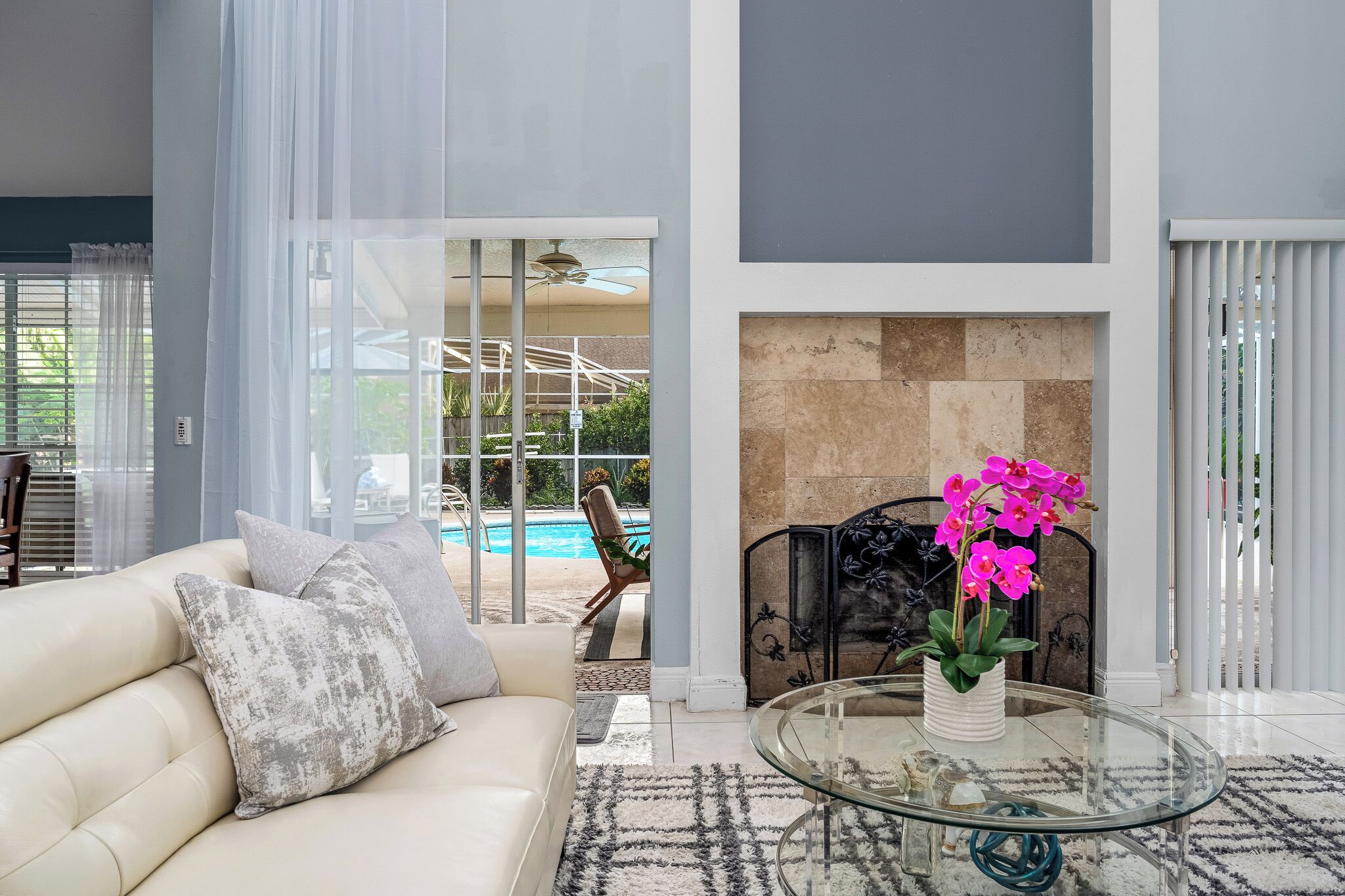 No smoking, except outside the screened enclosure to the right side of the pool.