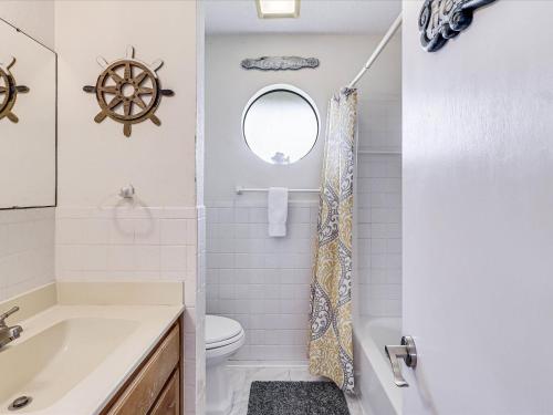 This two-story condo is nestled in the tranquil community of City by the Sea with stunning water views. The perfect escape for a family vacation or a romantic getaway. With two bedrooms and two bathrooms, this condo comfortably sleeps six people. The first bedroom boasts a king-size bed and the second has twin bunk beds, making it perfect for children or friends traveling together. This home is also pet friendly allowing dogs under 25lbs.