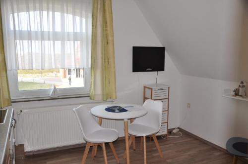 Haus am Wäldchen Wohnung 1 offers accommodations in Baltrum, a 8-minute walk from Baltrum. Free Wifi is available throughout the property and Baltrum Beach is a 9-minute walk away. Providing a terrace and garden views, the apartment includes 1 bedroom, a living room, satellite flat-screen TV, an equipped kitchenette, and 1 bathroom with a shower. Towels and bed linen are provided in the apartment. This apartment is allergy-free and non-smoking.