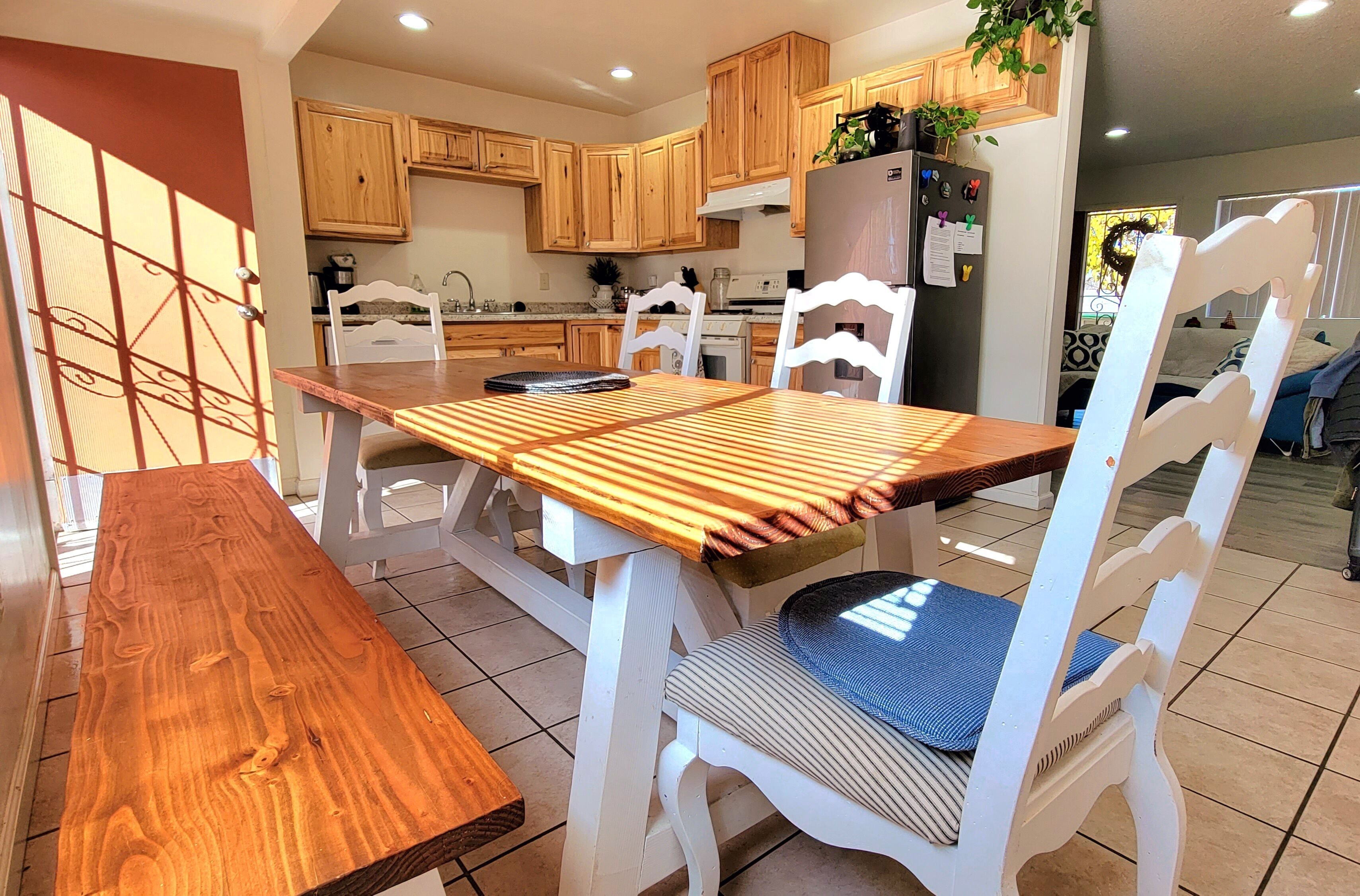 Recently upgraded and beautifully furnished throughout, this spacious and private four-bedroom home features an open floor plan with an full kitchen, counter-height seating, dining area, and a living room with 65” Smart TV.