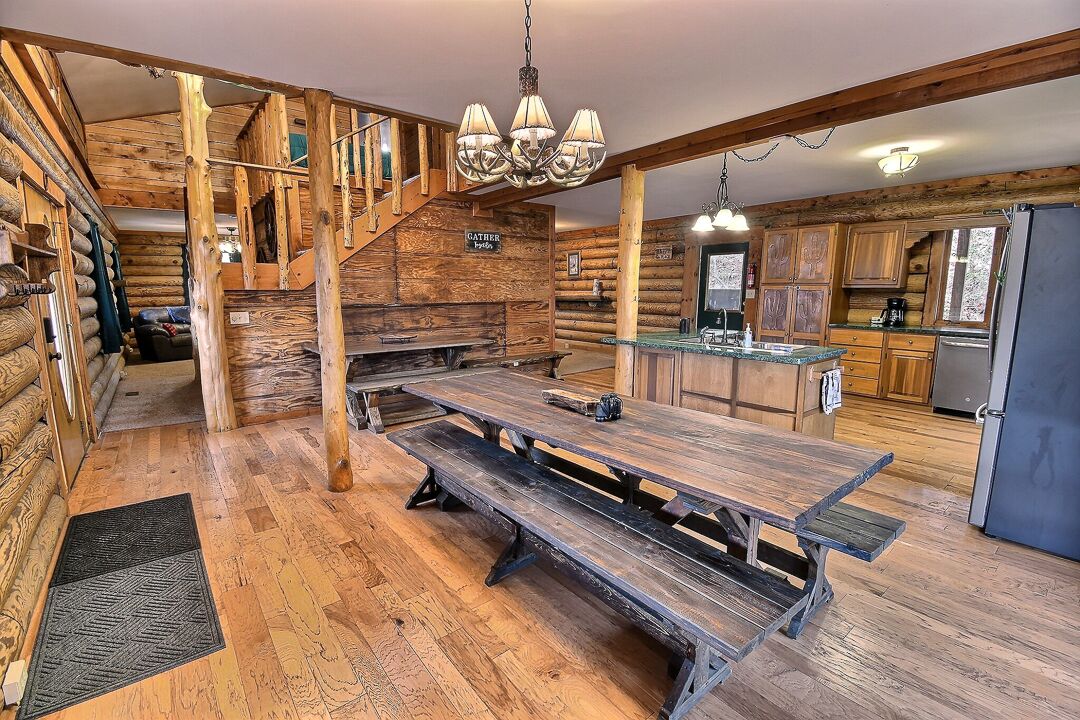Vacation on this one of a kind, 10 acre secluded log cabin. Surrounded by nature with a lovely creek that greets you at start of the private drive. Don’t be fooled by the long driveway as you’ll spot the wrap around deck, perfect for morning coffee. Bask in the serenity and calmness this cozy cabin has to offer, while you kick back and relax in the hot tub. The interior is warm and welcoming topped off with a glorious chandelier. Lots of space to stretch out with an open floor plan. NO HUNTING ON THE PREMISES.