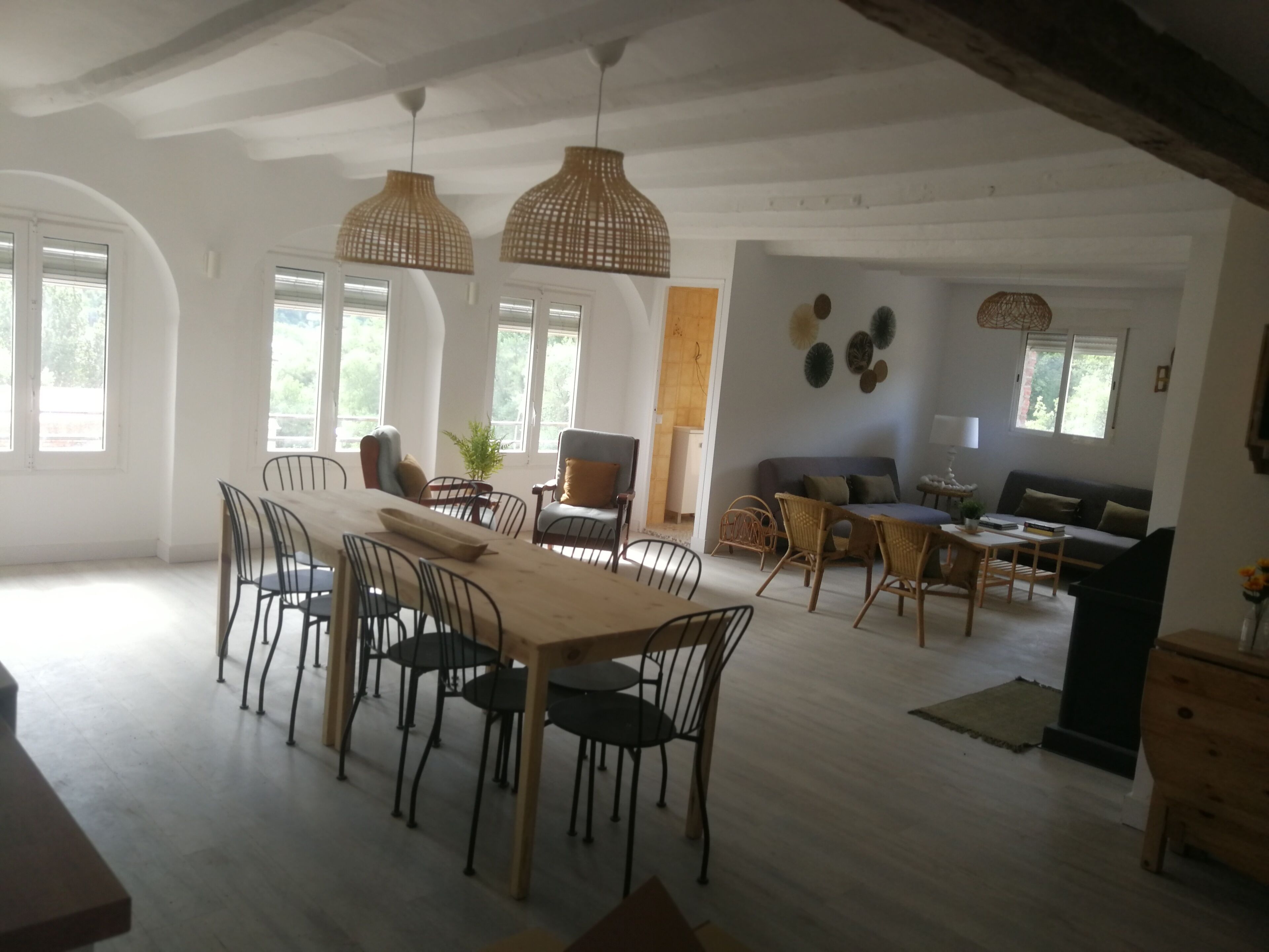 The perfect house - comfortable and authentic: CAN MAXIA have 8 double bedrooms all with en-suit bathrooms and all are spacious and lovely decorated. On the ground floor is a hall way, a lounge area, a dining area, one of two kitchens and two double room with bathroom en-suit. On the huge first floor is a striking common area with a huge kitchen, a long traditional Spanish dining table and a really pretty and cozy fireplace area restored with great respect for the history of the house. Here is also a terrace with a table and an absolutely stunning view over the Catalan country site. On the first floor is also 2 bedrooms all with private bathrooms.