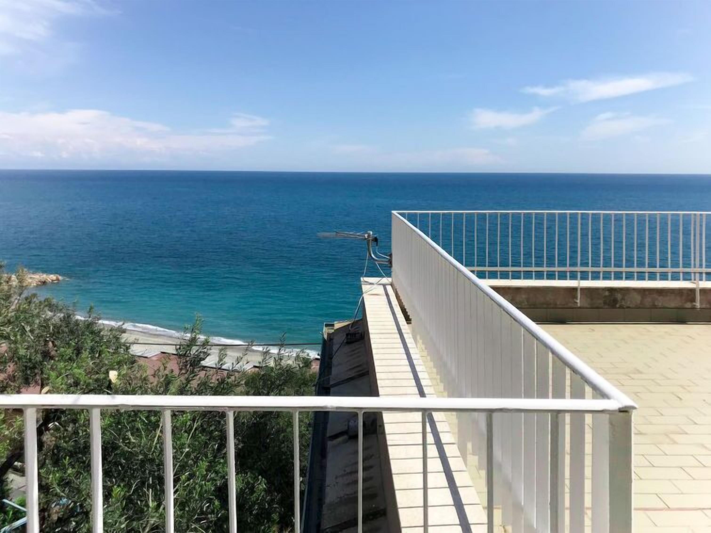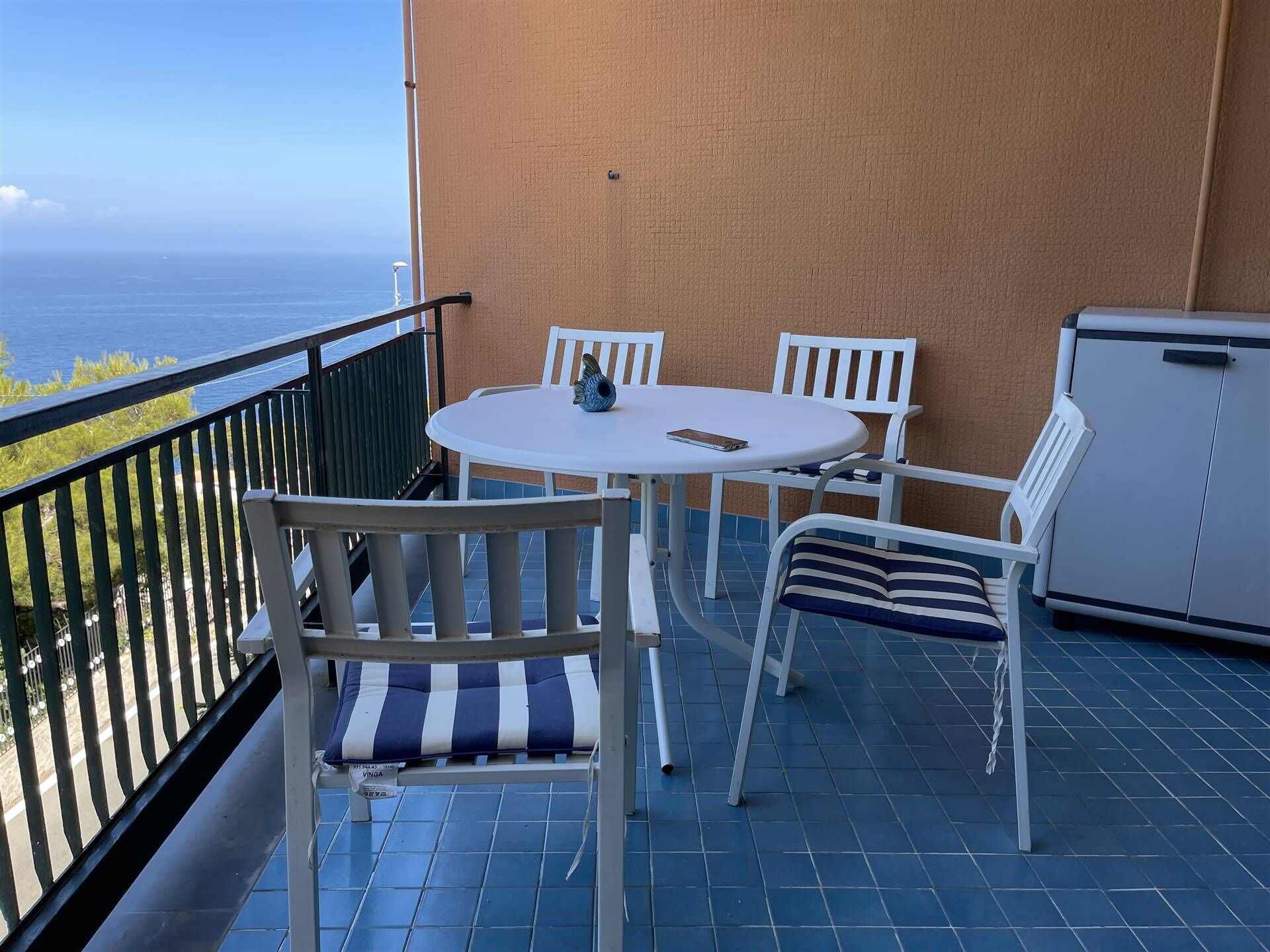 - "Wonderful" - "Amazing views, clean spacious well equipped apartment, suit family with 2 children (2 bedrooms). Bergeggi close to beaches and other tourist opportunities. Friendly host and easy to deal with." - "This spacious apartment in a cliffside 1960's condominium development (3 buildings) high above the Mediterranean in the Italian Riviera overlooks the beach and a small island with a tiny chapel and ruined watch tower. It has marble floors, high ceilings (chandelier in living/dining area), and a balcony running the width of the apartment to which the living/dining area and master bedroom open. There are large glass doors and tilting windows to enjoy the spectacular view, which often included a fishing boat unreeling or hauling in its net. We liked the vintage furniture. The large tiled bathroom has a multi-head shower/tub combination. The kitchen is fairly small, but well equipped (washer, dishwasher, 4 burner gas stove top/electric oven, table seating two, and pod espresso machine). There is a comfortable bed in the master, and two singles plus a rolling cot in the second bedroom. There is air-conditioning, but we did not need to use it (nor the heat from the same unit). Each apartment has roof-top parking for one car; on-street parking is also available. The entry to the building (with elevator) is at the fourth floor, the apartment is on the third. The only minor negatives: because the building is built into the cliff the windows in the kitchen, bath and second bedroom at the rear open on an air shaft, and there is some traffic noise from the coastal highway at the bottom of the cliff when sitting on the balcony. Owner Daniela is fluent in English (and French) and is often at her nearby house in Bergeggi. If she is not there, renters are greeted by her keyholder Bruna, who is friendly but doesn't speak English; Daniela would be available by phone to answer questions. Daniela enjoys the chance to speak English with renters, and enjoys travel (including a recent trip to New York). When asked, Daniela offered sight seeing suggestions. We visited medieval town centers in Noli, Finalborgo and Cervo, and went to the archeological museum in the Miramar fortress in Savona, Liguria's second-largest city. There are small supermarkets nearby and a large Coop ipermercato at the Molo 844 shopping center in Vado Ligure. "