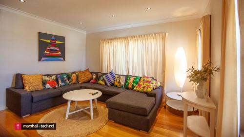 Captain's Quarters Bermagui provides accommodations in Bermagui near Keatings Headland Beach and Bermagui Marina. The air-conditioned accommodations are a 10-minute walk from Morehead Beach. There's a barbecue and guests can make use of free Wifi, free private parking, and an electric vehicle charging station. The vacation home provides guests with a patio, inner courtyard views, a seating area, a flat-screen TV, a fully equipped kitchen with a dishwasher and an oven, and a private bathroom with shower and a hair dryer. A microwave, a toaster, and fridge are also offered, as well as a kettle. At the vacation home, units come with bed linen and towels. For guests with children, Captain's Quarters Bermagui offers a baby safety gate. Guests at the accommodation can enjoy cycling and hiking nearby, or make the most of the garden. Horseshoe Bay Beach is 1.4 miles from Captain's Quarters Bermagui, while Beares Beach is 1.6 miles from the property. Merimbula Airport is 45 miles away.