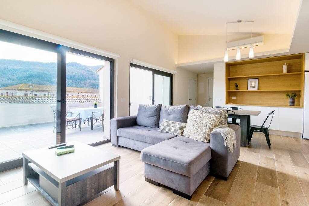 The view at the mountains and at the medieval city that this apartment has to offer is breathtaking! A spacious top-floor apartment with a private terrace that has been totally renovated and has all the facilities that will make your stay perfect. You can enjoy your time in a spacious living room and admire the stunning surroundings meanwhile you are having a meal. The building preserves the old stone walls, facade with beautiful ceilings and balconies so it makes you feel being part of the medieval history.