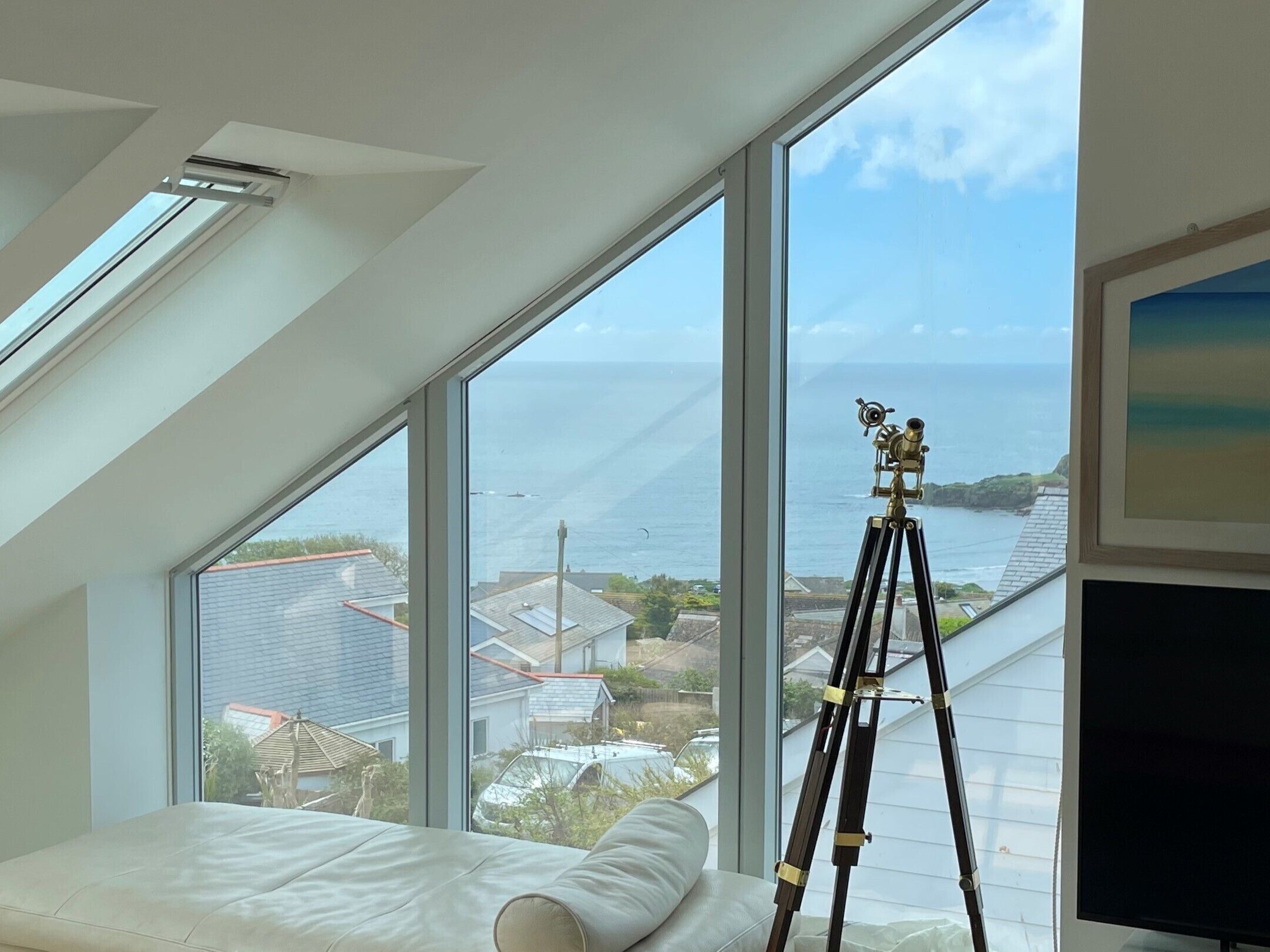 Relax on the comfortable window seat and private south-west facing balcony and enjoy spectacular views out to sea and of beautiful Burgh Island with the iconic art deco Burgh Island Hotel and the 14th century Pilchard Inn.