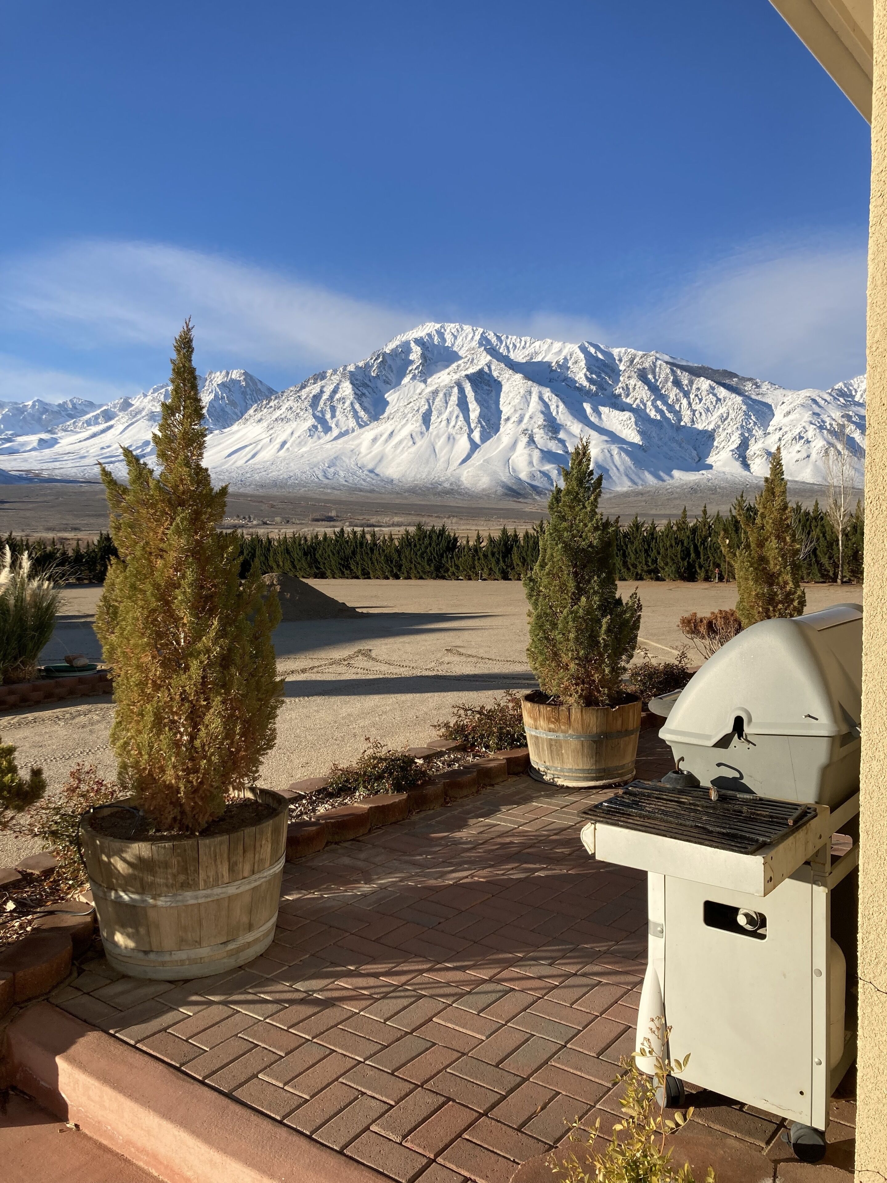 This 1700 square foot house has it all! Awesome views of the Sierra and White Mountains, Babbling brook, Large deck, 2 king beds, 2 bathrooms, one full bed, Granite countertops, 47-inch flat panel TV, Wifi, Evaporative cooler, Wood burning stove.