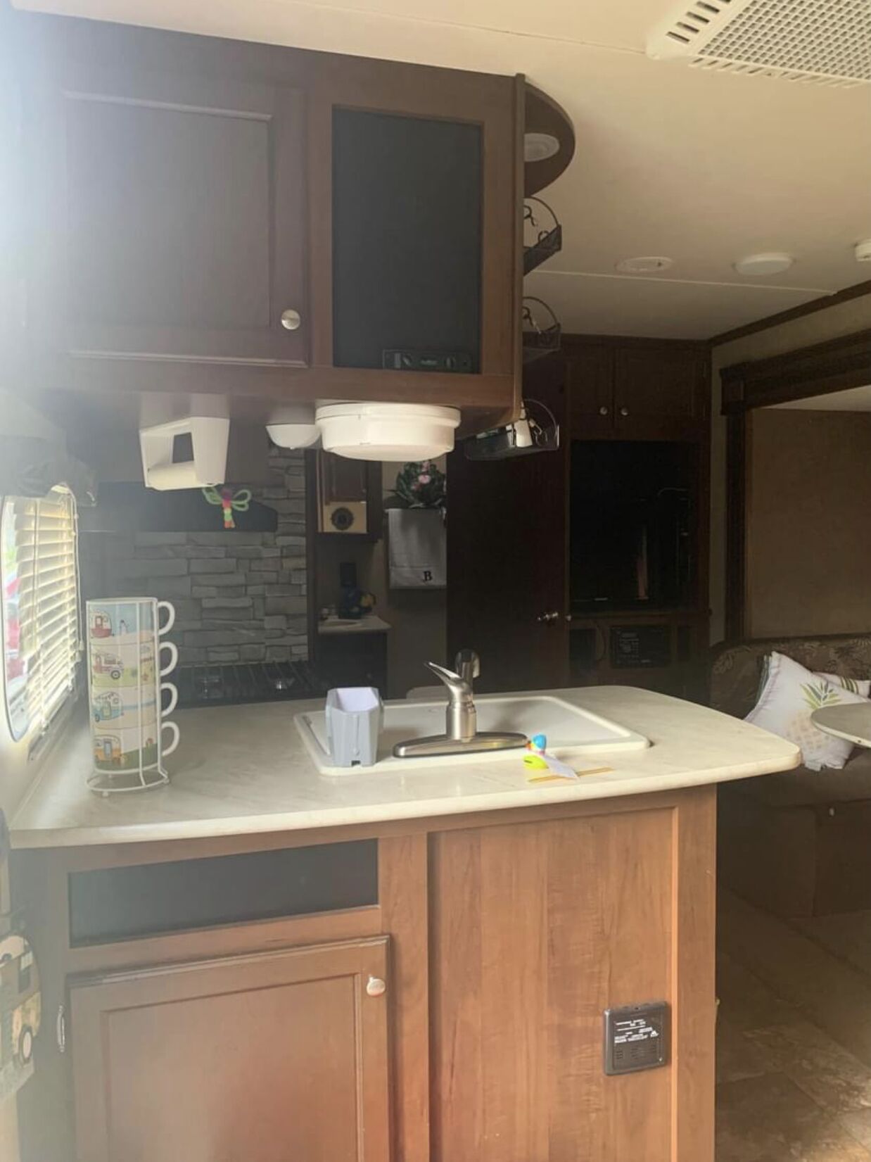 It also has a full kitchen with a full size fridge, kitchen sink, stove/oven microwave and a standard coffee maker. If you don't want to cook the Rail House Grill is nearby where you can either eat in or have them deliver to your cabin. It's conveniently located about 10 mins from either the town of Harlan or Cumberland.