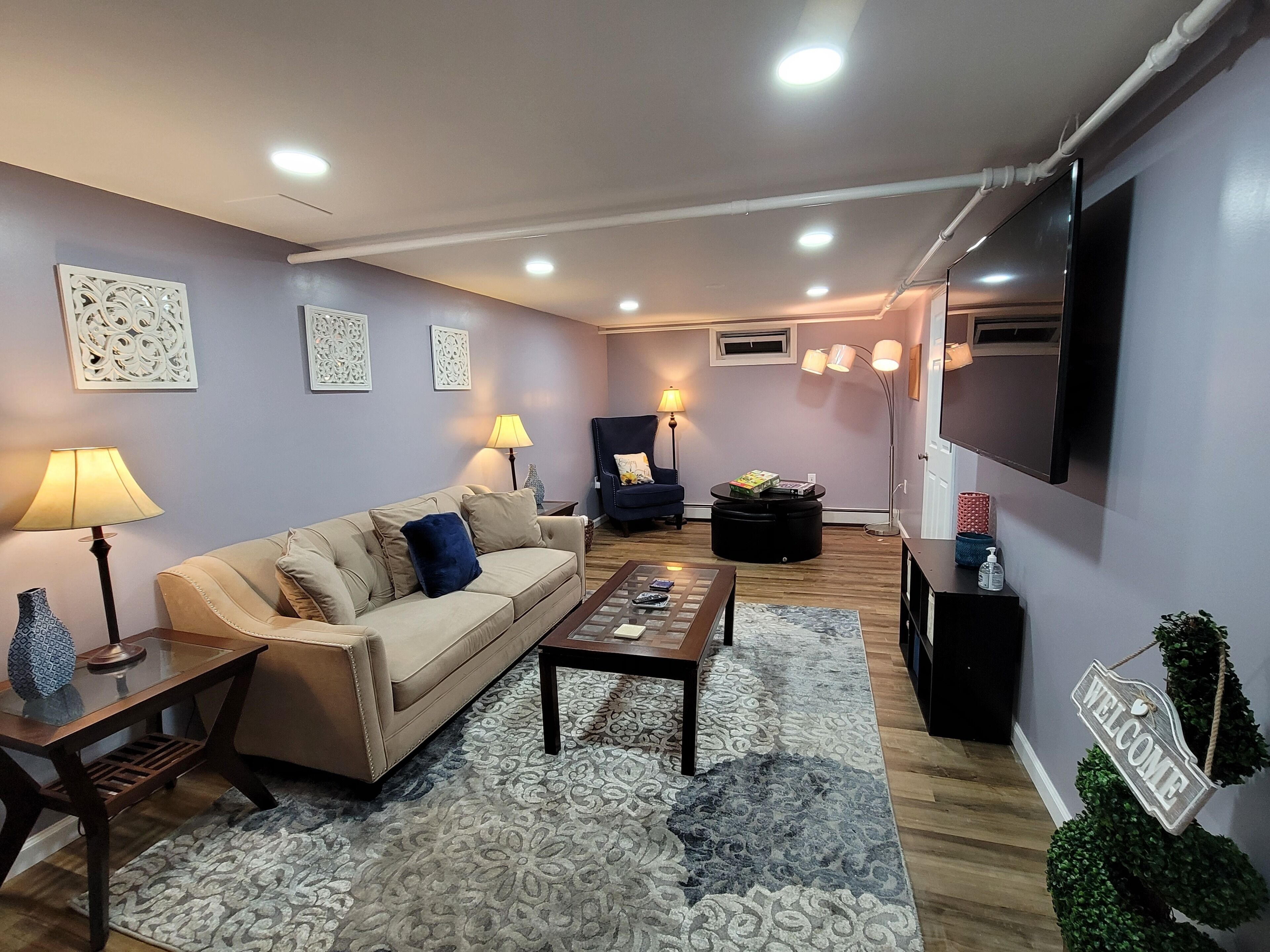 Newly renovated spacious apartment in lower level of single family home. New beds, linens, 3 smart tvs with great wifi. Fully equipped kitchen. Private guest access.