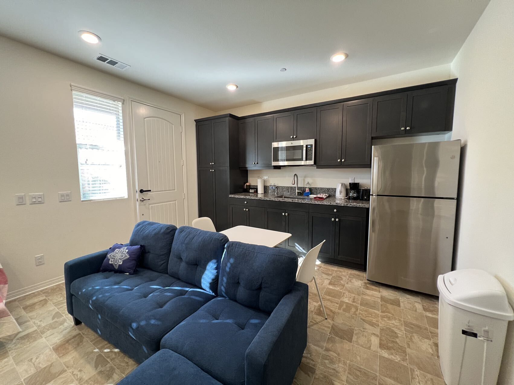 New 1bed 1bath guest house with kitchen for simple food cooking(Note: There is no gas stove, but have microwave and refrigerator). Laundry room in unit.