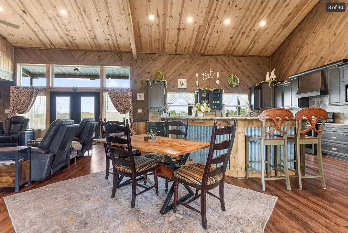 Cross Creek Ranch blends rustic charm with thoughtful luxury. Whether you're attending a wedding nearby at The Grand Ivory or Bethel Rock, gathering with loved ones, or simply escaping the city for a breath of fresh air, this home invites you to slow down and savor every detail. Inside, you’ll find vaulted wood ceilings, a stone fireplace, and curated decor throughout. There are five private bedrooms with plush bedding and Tempurpedic mattresses, along with three spacious bathrooms — including a serene master suite with a soaking tub, sunset views, and two walk-in closets.