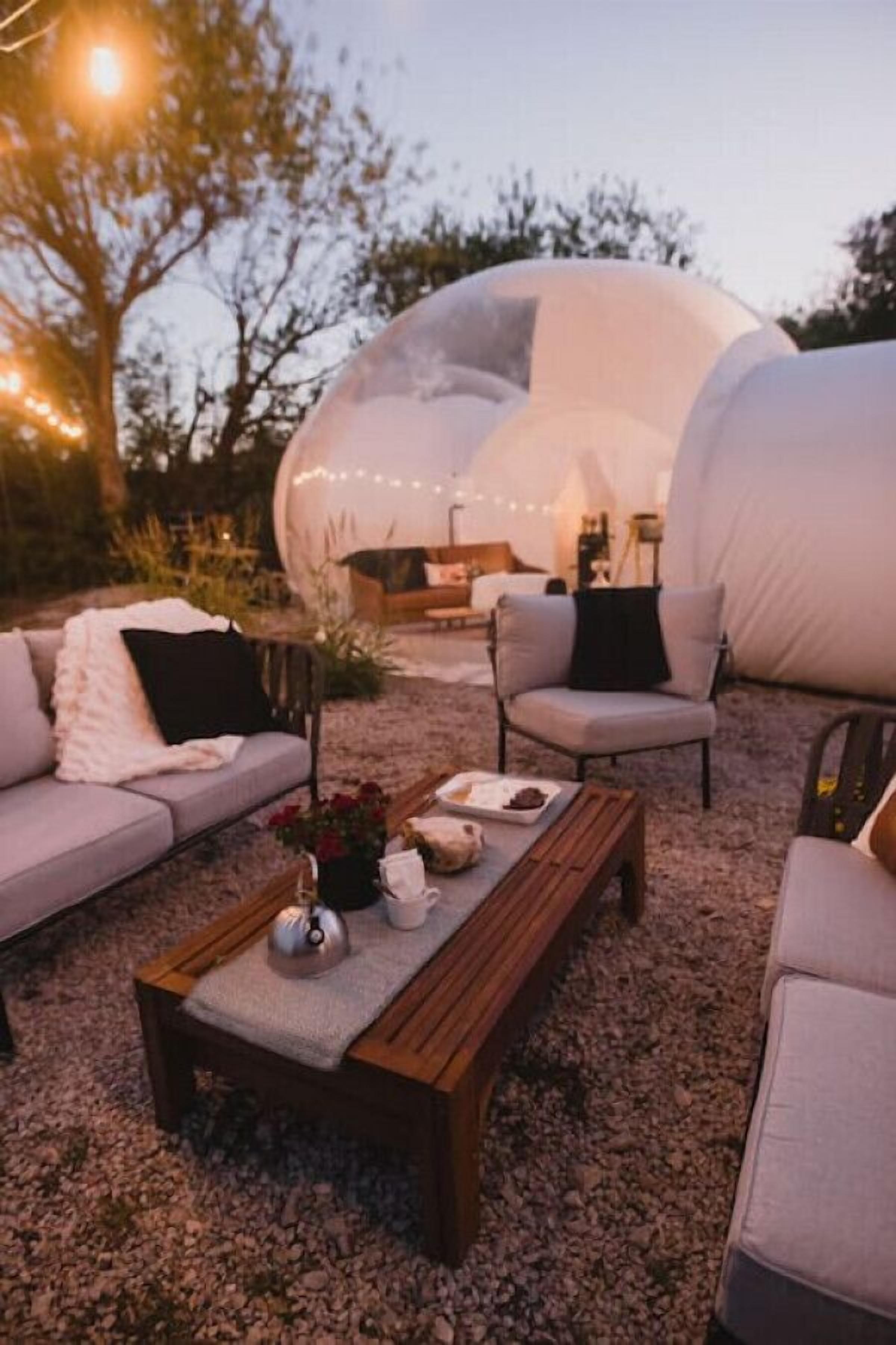 In the inviting living area, guests can create cherished memories amid the dome's distinctive ambiance. Indulge in a whimsical moment on one of our picturesque swings, whether savoring a meal at the bar or simply enjoying the view.